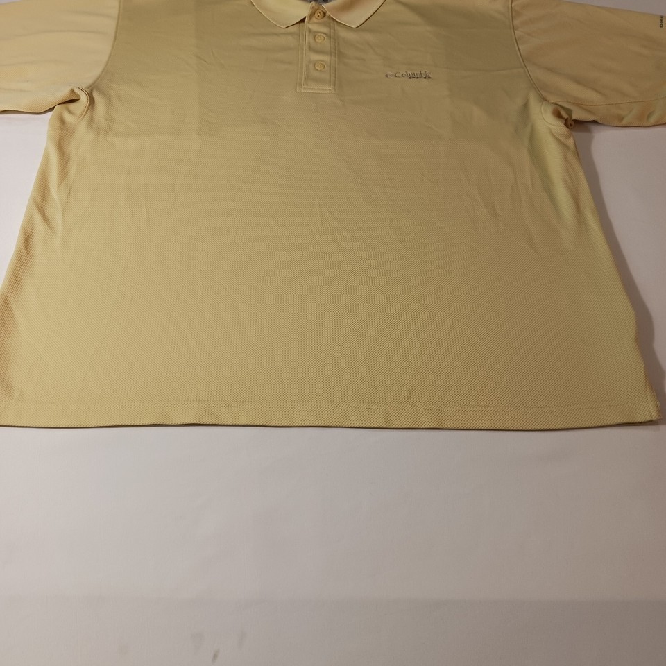 Introducing the Columbia PFG Perfect Cast Men's XL Yellow Vented Short Sleeve Polo Shirt FM6016. This classic polo shirt is perfect for any casual occasion, with a solid pattern and embroidered logo accents. The shirt is made of 100% polyester knit fabric, which makes it breathable and easy to care for.