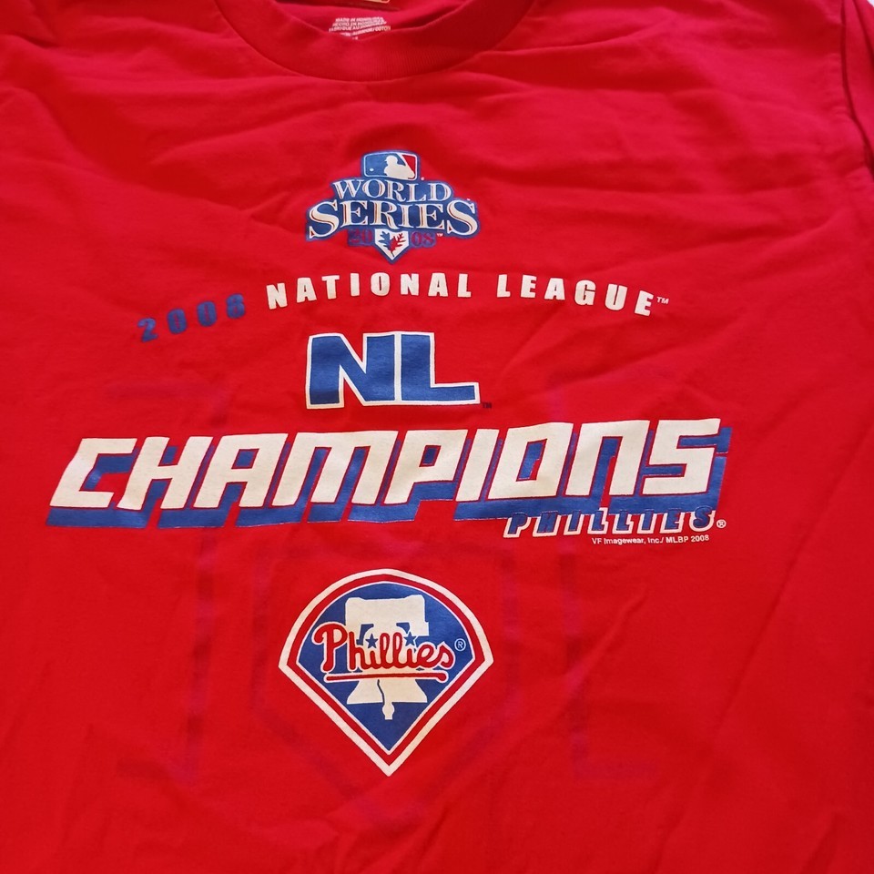 Get your hands on this Philadelphia Phillies National League Champions 2008 Medium size Long Sleeve T-Shirt MLB, perfect for any fan of the team. This shirt comes in size L and features the team's iconic red color. It's made for men and features the team's name, making it a must-have for any true fan.