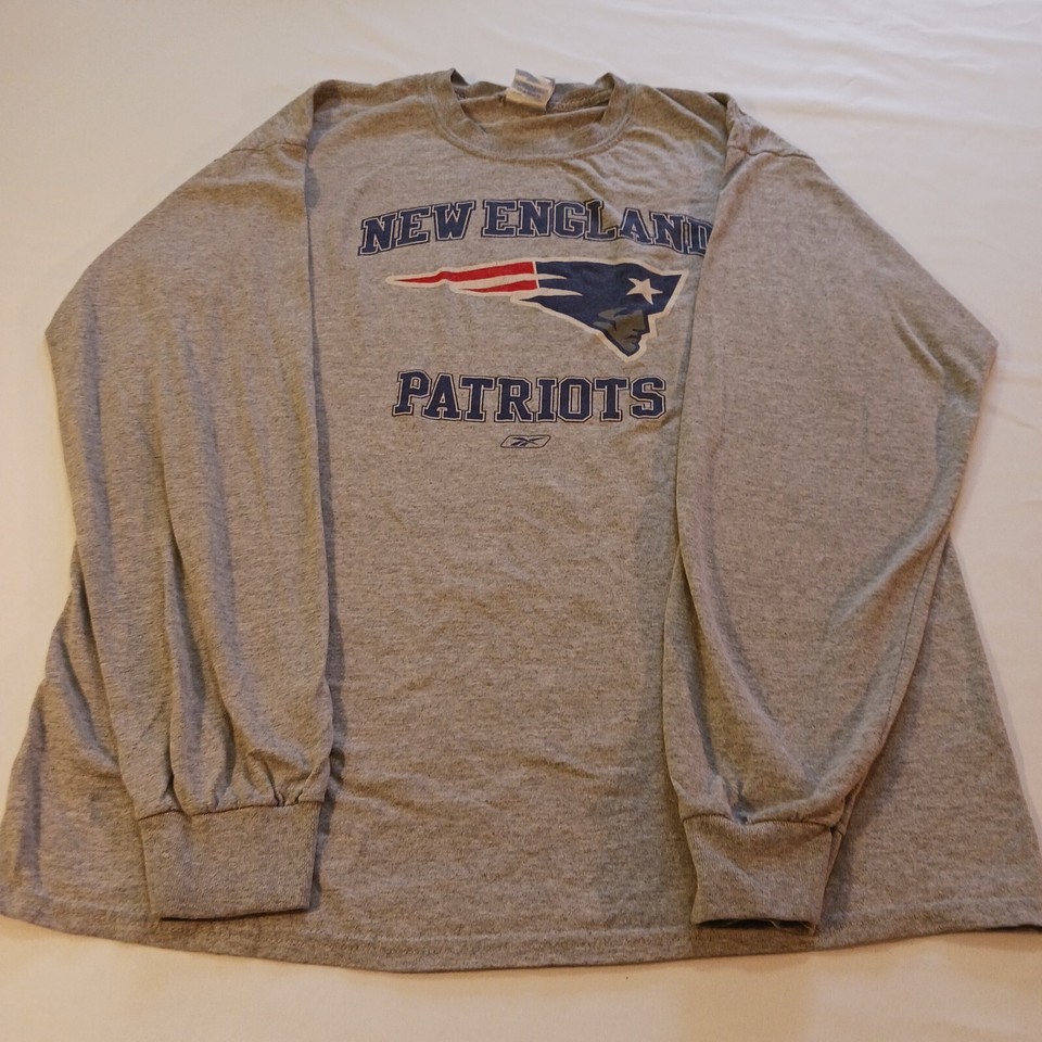 NFL New England Patriots Football Men's Grey Long Sleeve T-Shirt Size Large