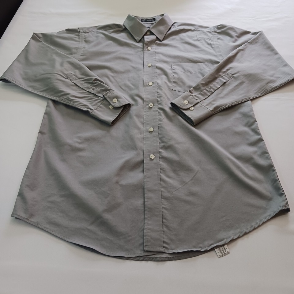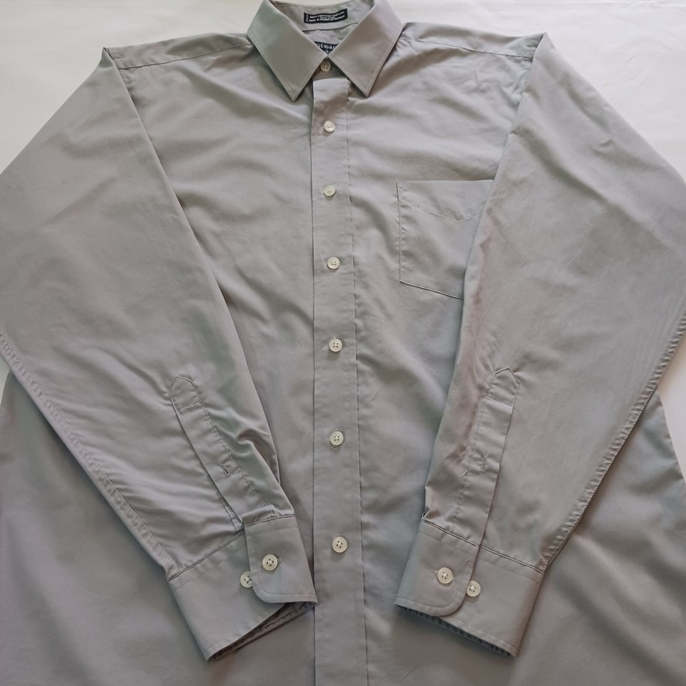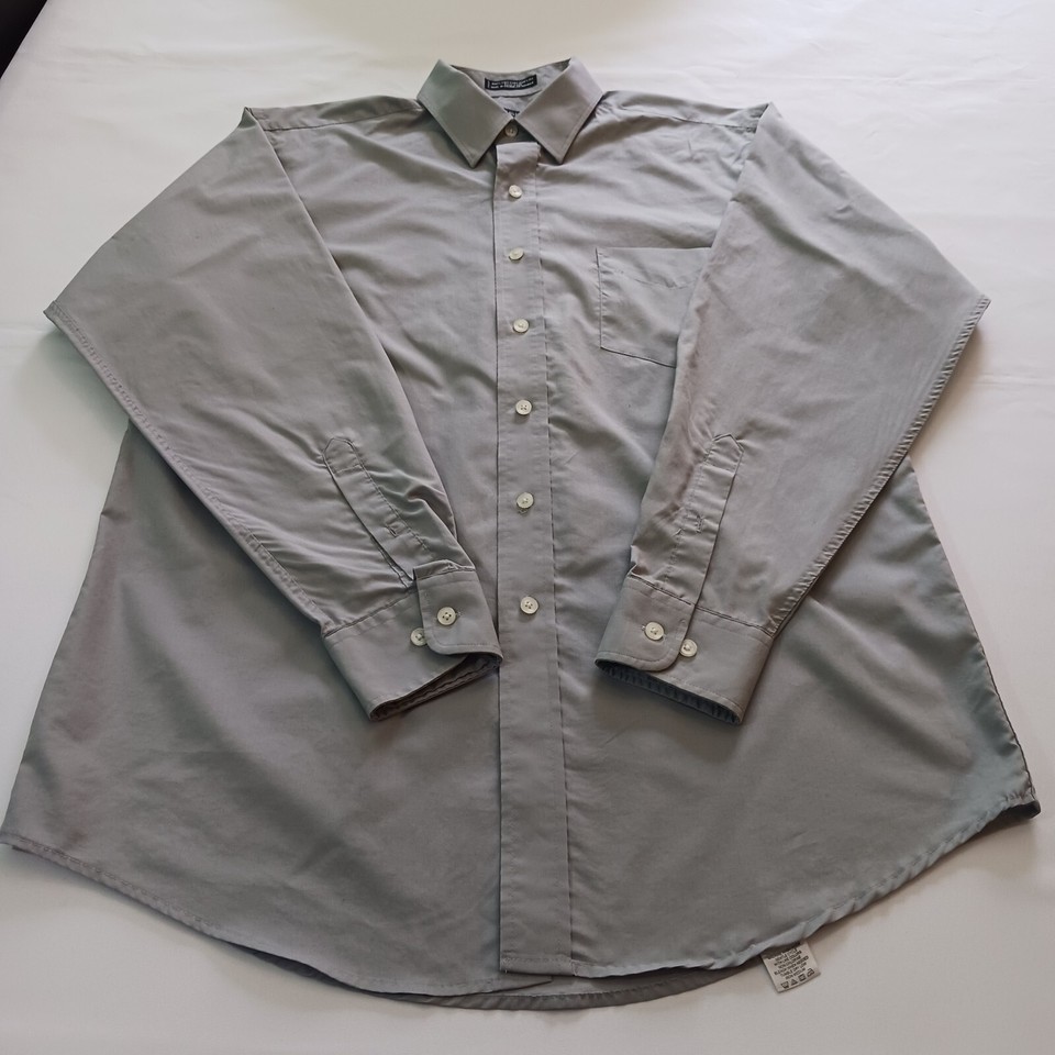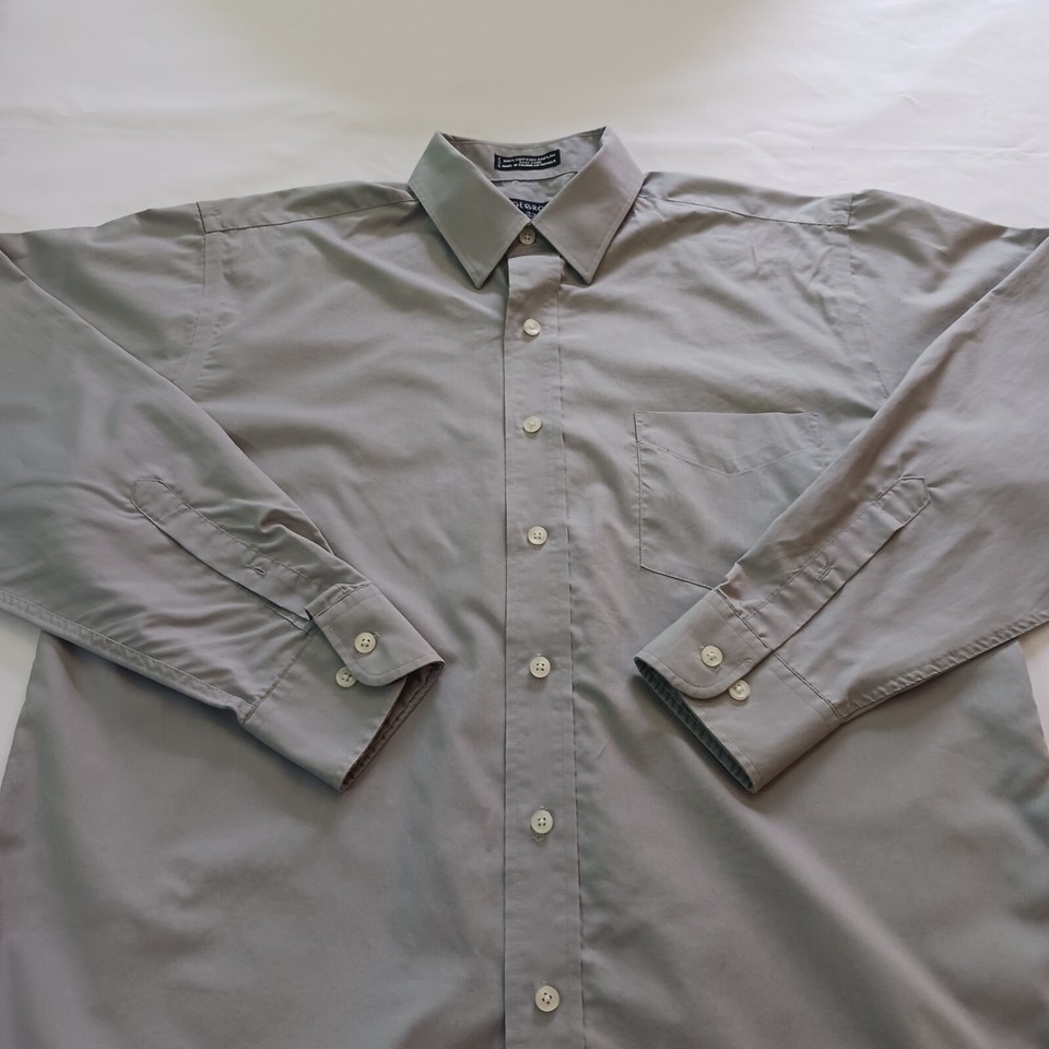 George Long Sleeve Button Up Men's Cotton Poplin Gray Shirt Size 15 1/2 (34/35)