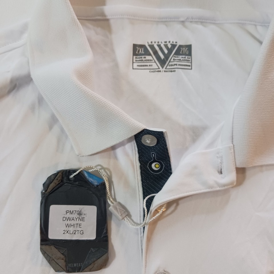 Levelwear Modern Fit LODGE Men's White Polo Shirt Short Sleeve Size 2XL