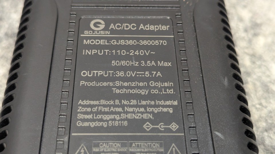 New GOJUSIN AC/DC Charger GJS360-3600570 AC100-240V Output 36 V 5.7A