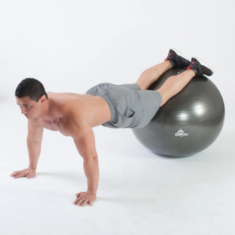 Black Mountain Products professional-grade stability balls are exceptionally durable exercise balls designed for gym, office, and home use. Each Pro Series ball is designed to hold 2000 lbs. of static weight and is anti-burst resistance up to 1000 lbs. of static weight. Black Mountain Products gym balls can improve your core strength, balance and overall agility. Each exercise ball is designed with dense walls for the ultimate support and durability for any use. Size options 45 cm (5' and under) 55 cm (5' to 5' 6" tall) 65 cm (5'6" to 6' tall) and 75 cm (6' to 6' 5" ) and 85 cm (6' 5" or taller).