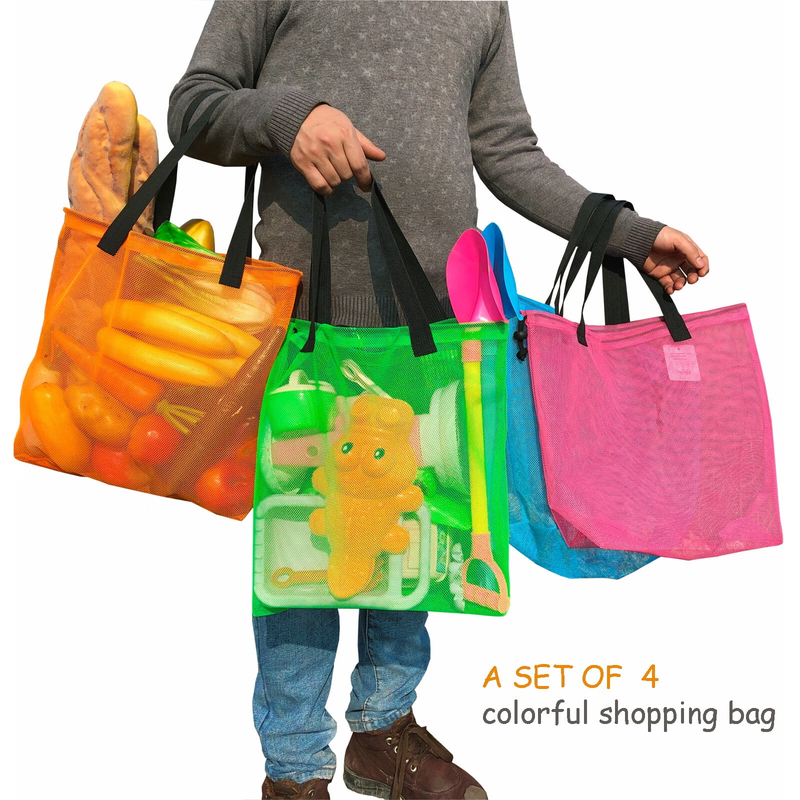 Reusable 4Pack Colorful Mesh Beach Tote Bags |