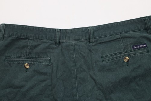 Vintage 90s Tommy Hilfiger Mens 40 Faded Pleated Above Knee Chino Shorts Green