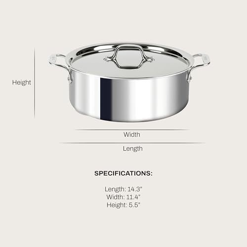 All-Clad D3 3-Ply Stainless Steel Stockpot with Lid 8 Quart, Induction, Oven Bro
