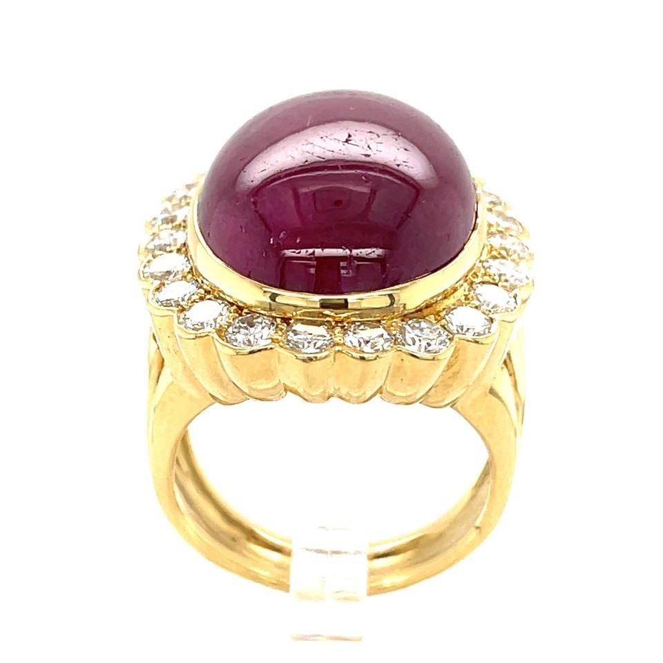 18K YG 35.7ct Ruby Cabochon 2.2ct Diamond Ring Size 10 20.9g
