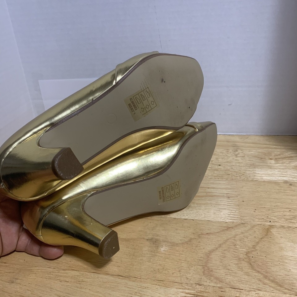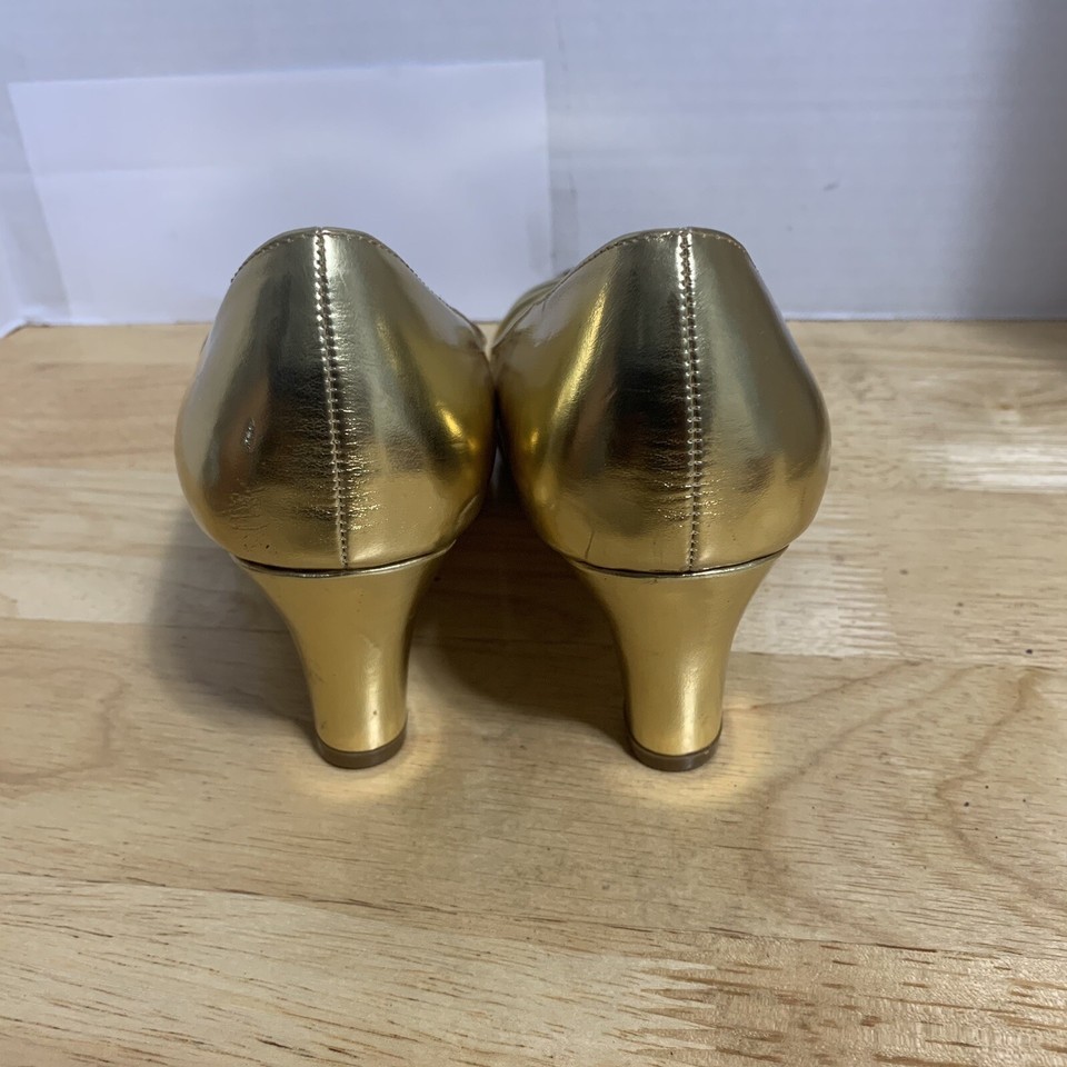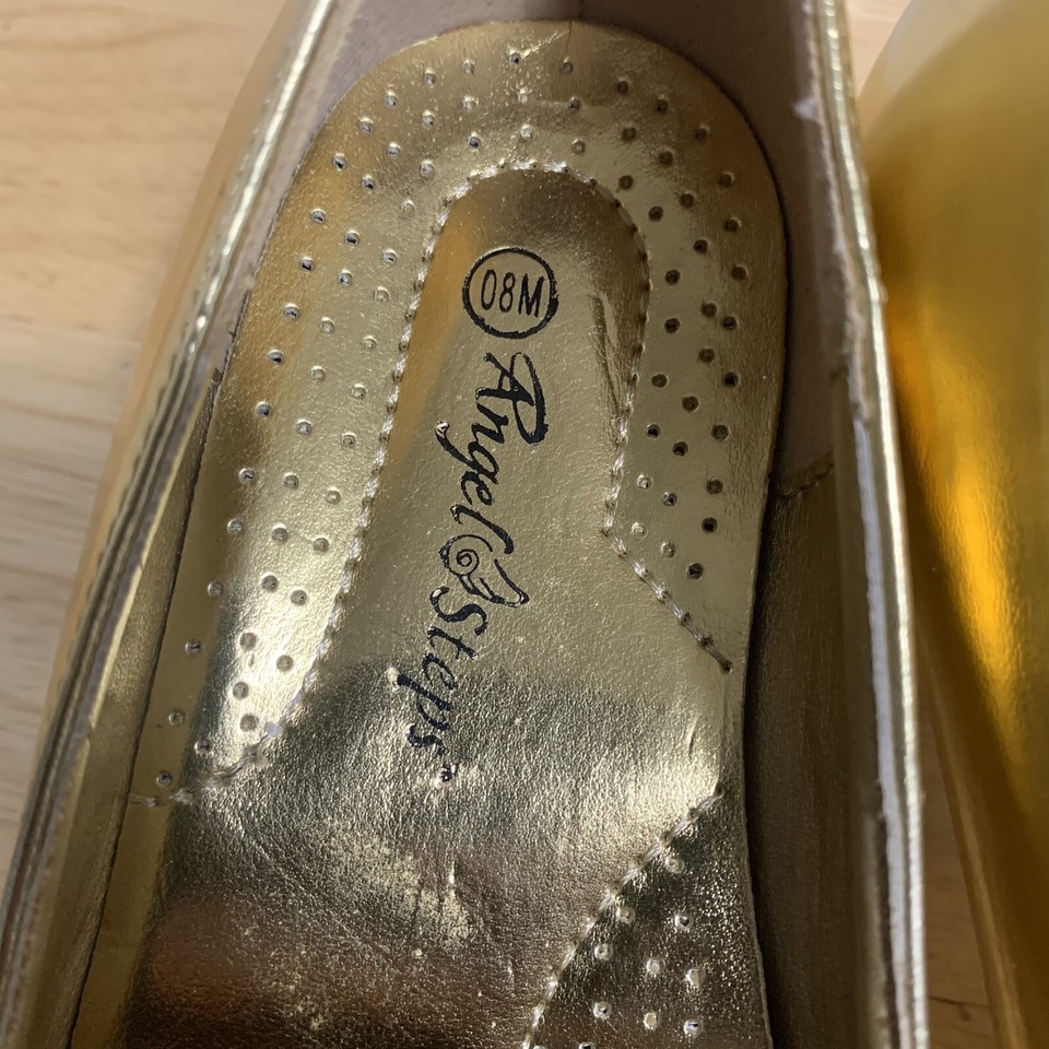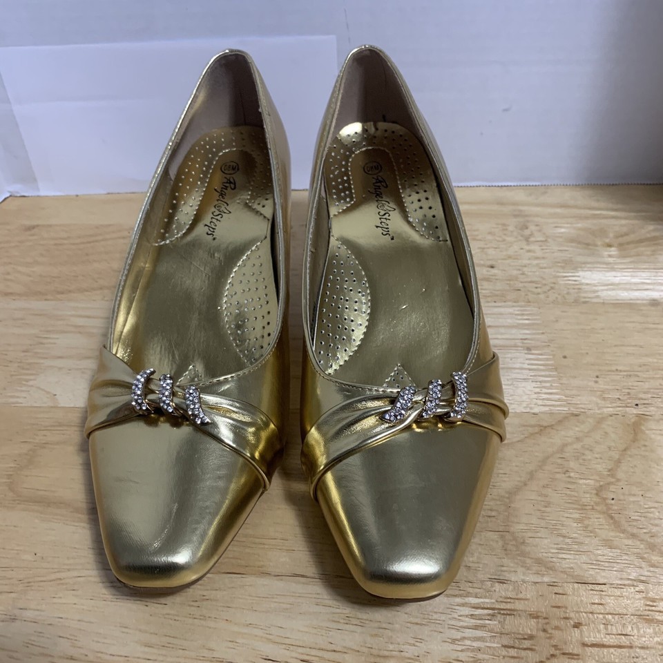 Angel Steps Gold Pointed Toe Gem Detailed Heel Shoes Size 8M Preowned
