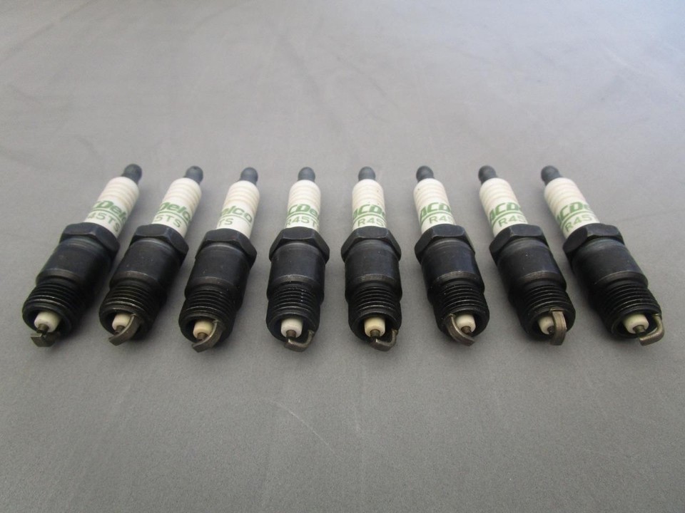 This ad is for a set of eight (8) Genuine GM ACDelco R45TS Spark Plugs. They are New Old Stock Made In Mexico.