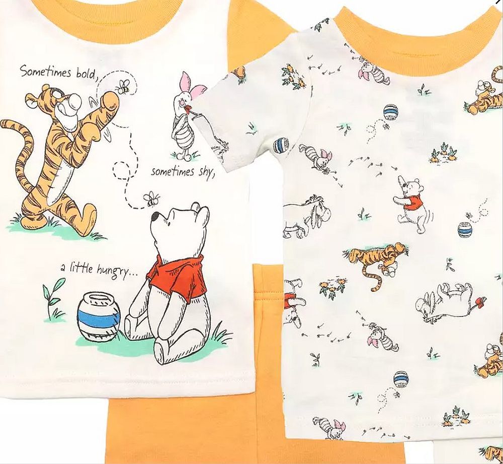 Get ready for sweet dreams and playful mornings with this adorable 4-piece Winnie the Pooh pajama set! Featuring everyone's favorite friends from the Hundred Acre Wood, this set includes two short-sleeve tops, one pair of shorts, and one pair of pants, offering versatile options for any season. One top shows a bold Tigger, sometimes shy Piglet and hungry Pooh, while the other pieces feature an all-over print of Pooh, Tigger, Piglet, and Eeyore. Made from soft, snug-fit cotton, these pajamas are perfect for cozy nights and fun-filled day.
