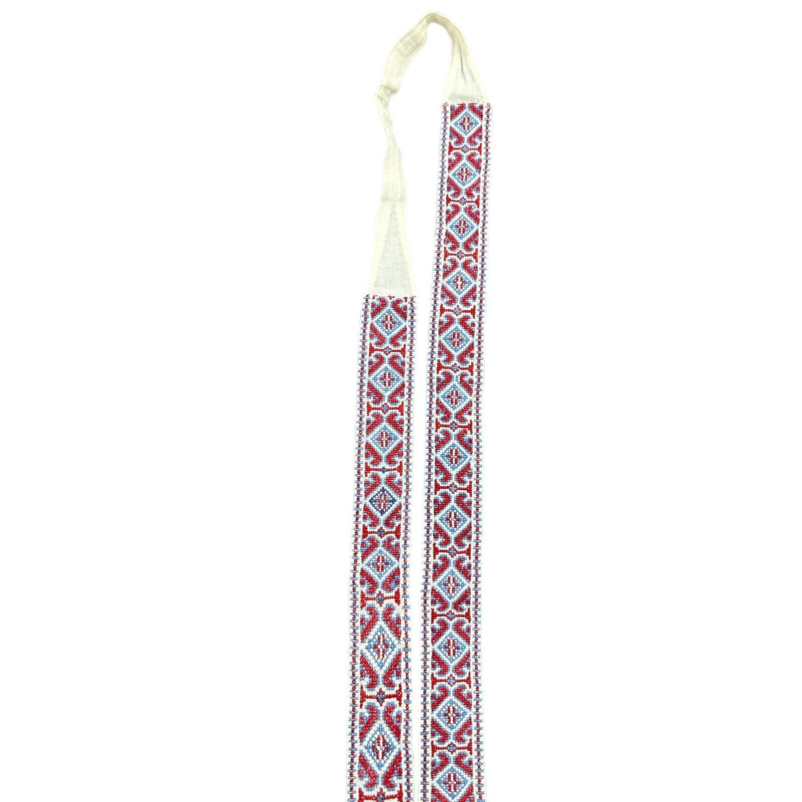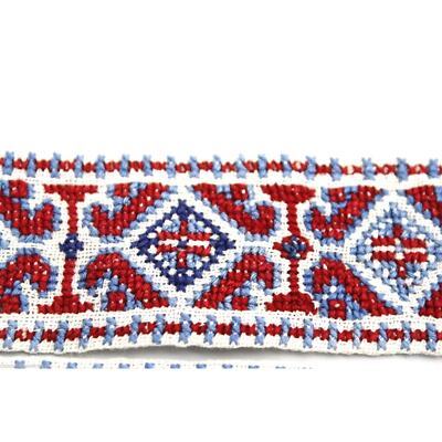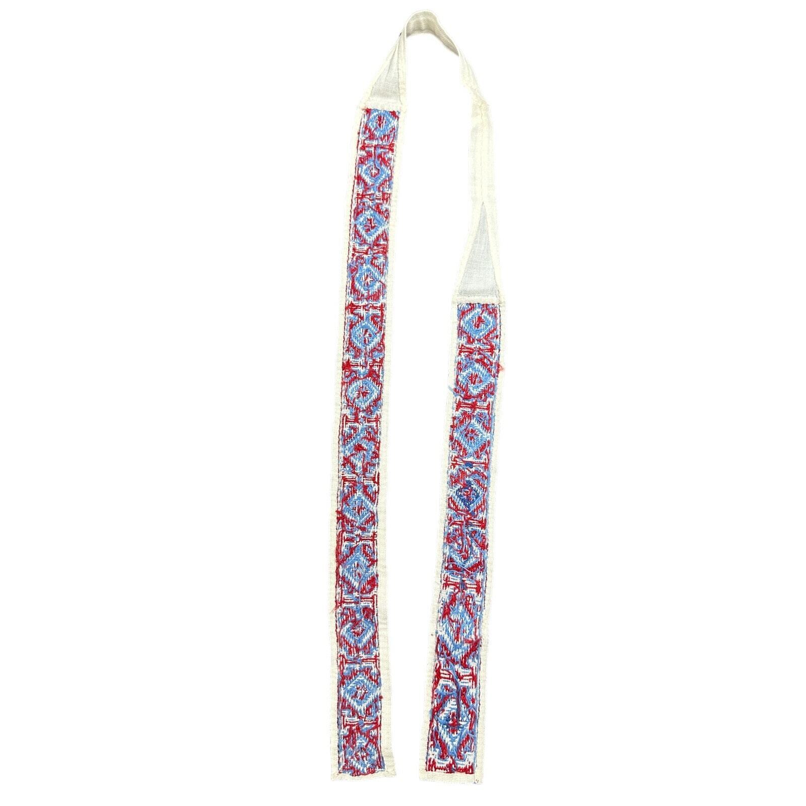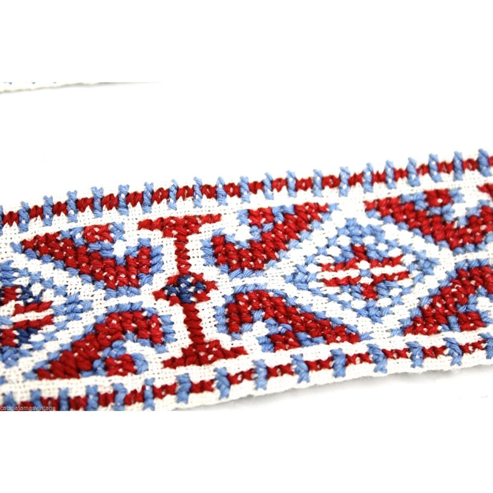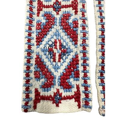 Antique Handmade Needlepoint Scandinavian Nordic Scarf RWB Trim 46" x 1 1/2" - not sure exactly how it was used?