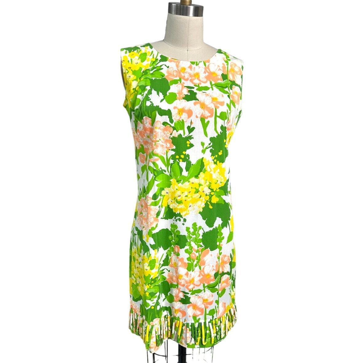 1960s VTG Cotton Floral Dress Smart Time Unique Hem Sz S/M Yellow Green Orange