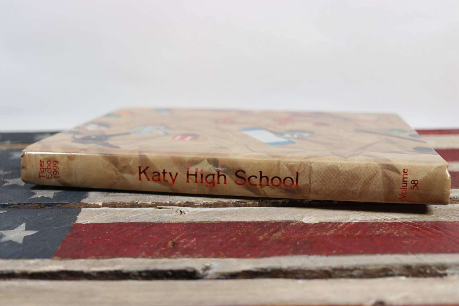 The product is a vintage 1999 Katy High School yearbook from Katy, Texas, specifically Volume 58. This yearbook is signed, adding a personal touch to this collectible item. It serves as a historical memorabilia piece that captures memories and moments from the students and staff of Katy High School during the 1999 academic year. This item would be a valuable addition to any collection related to vintage school memorabilia or to those with ties to Katy High School or Texas.
