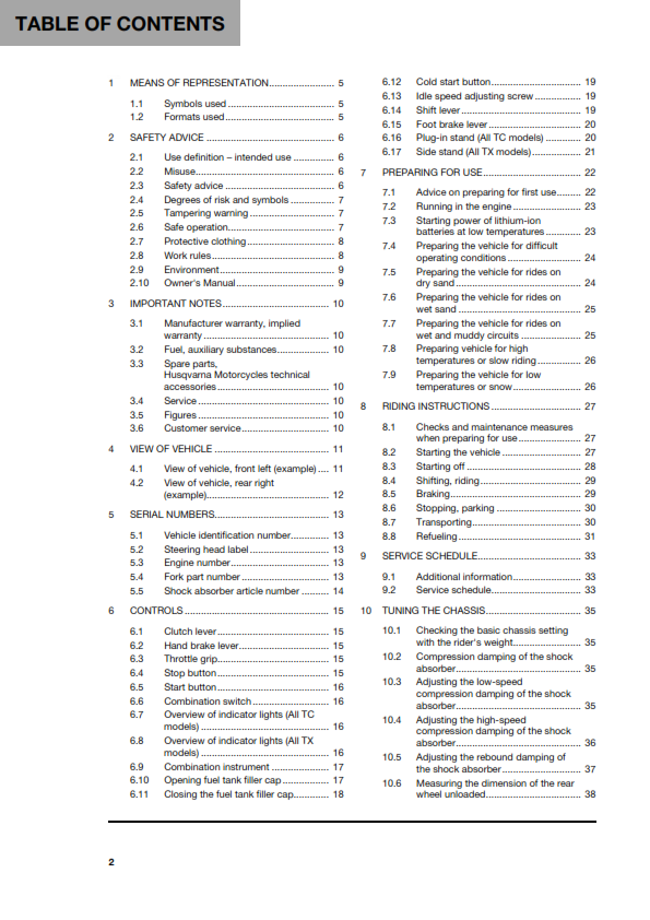 HUSQVARNA 2023 - TC TX 250 300 HERITAGE - OWNERS MANUAL - REPRINTED COMB BOUND