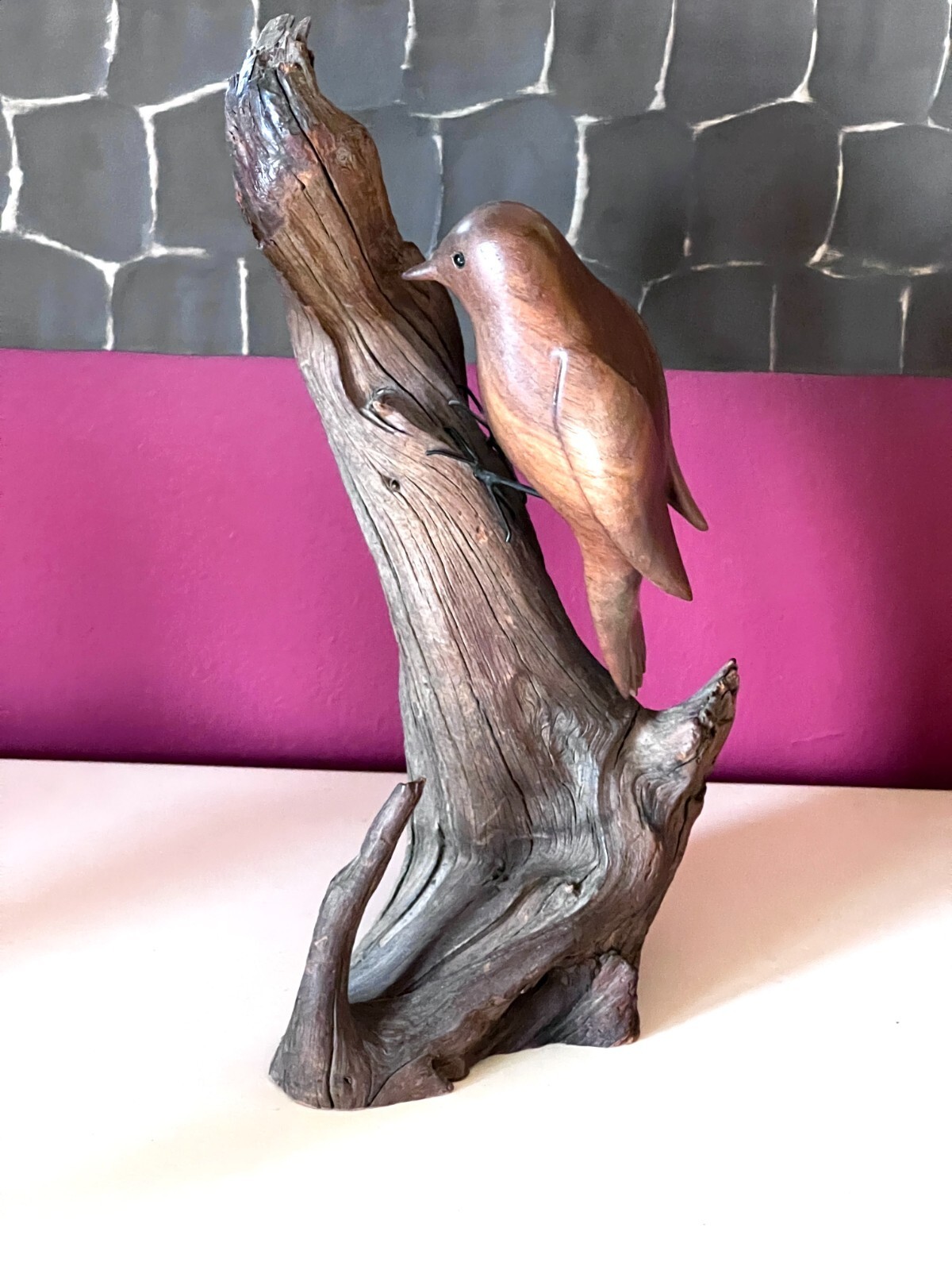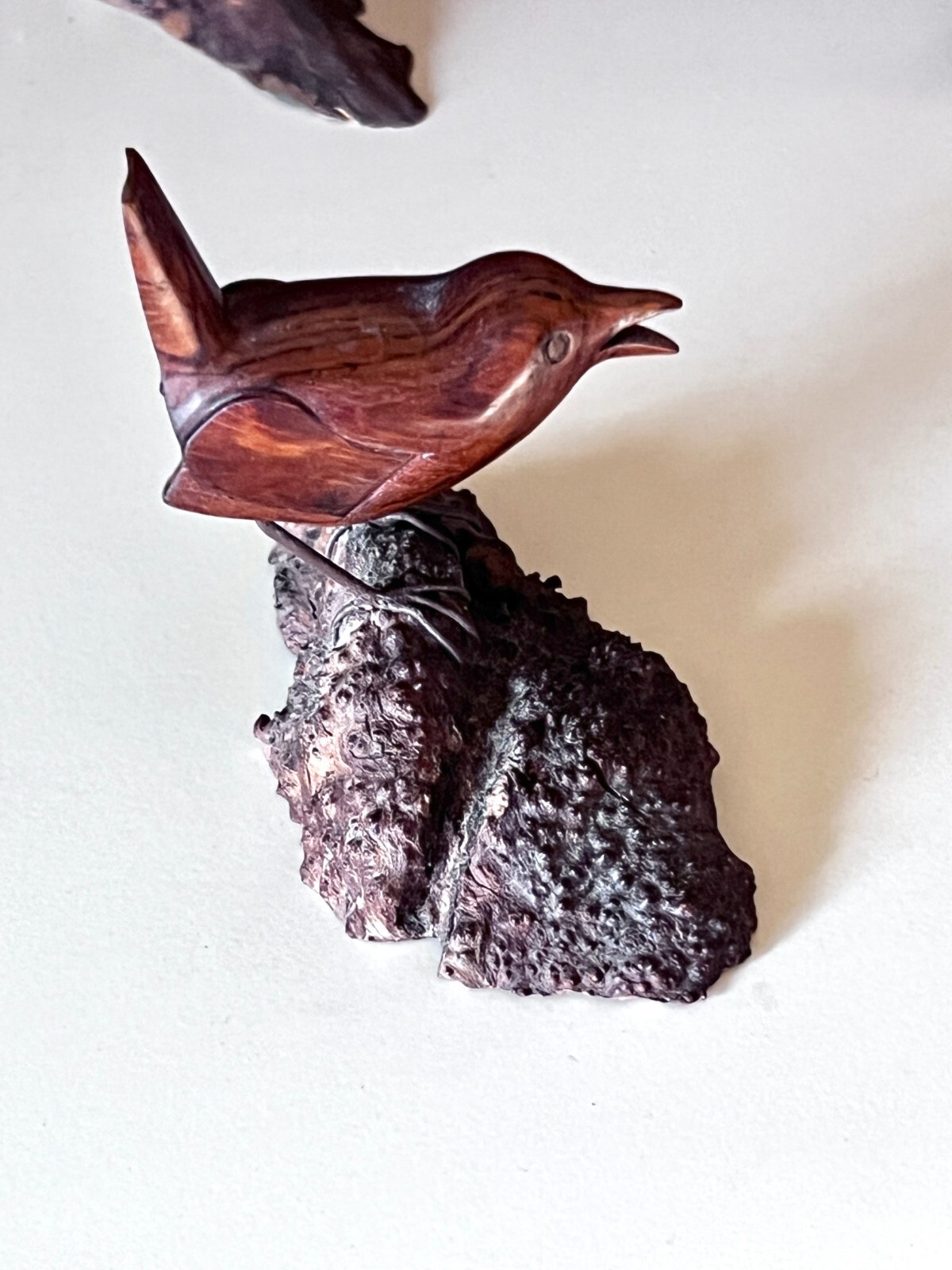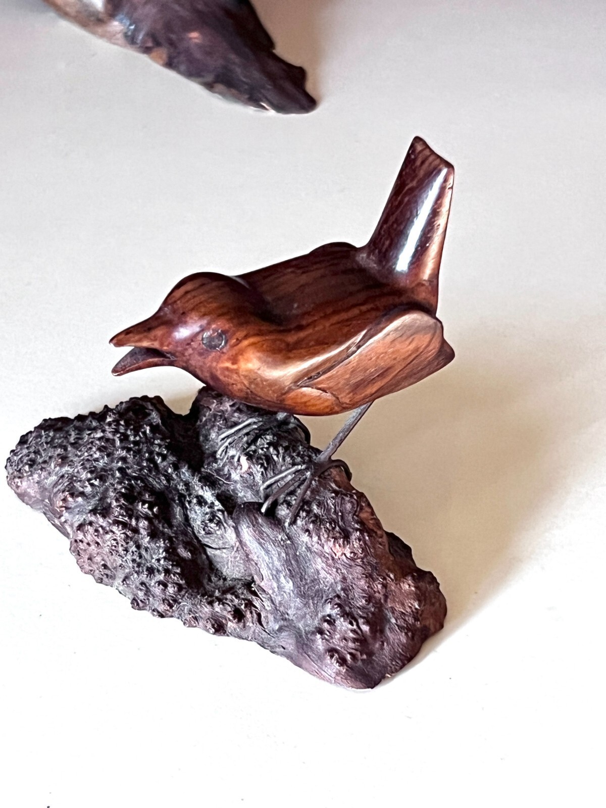 RARE Vintage K.E.Carl hand Carved Wood Birds Lot of *5* 1975-79 Driftwood