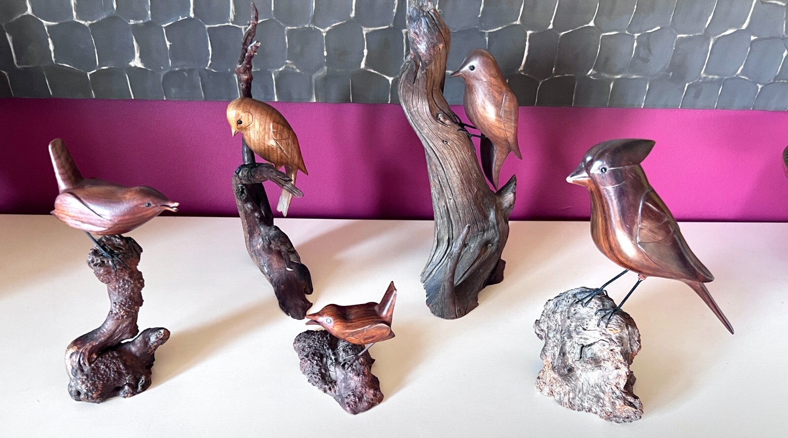 Vintage K.E.Carl hand Carved Wood Birds Lot of 5 1975-79 Driftwood