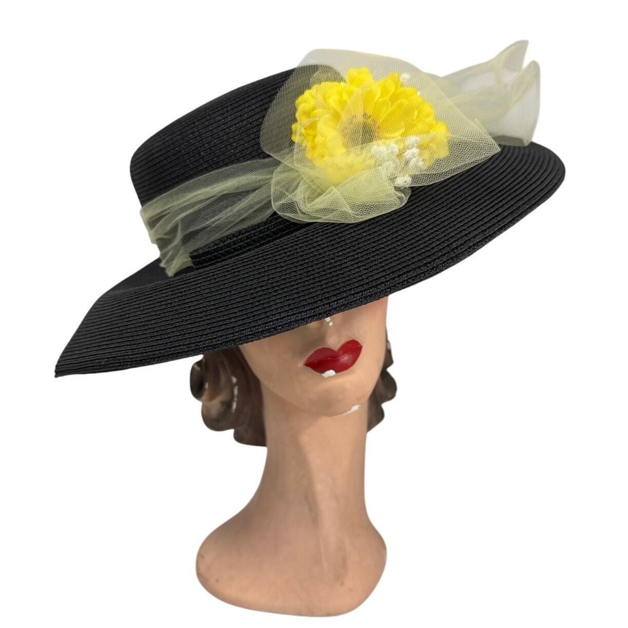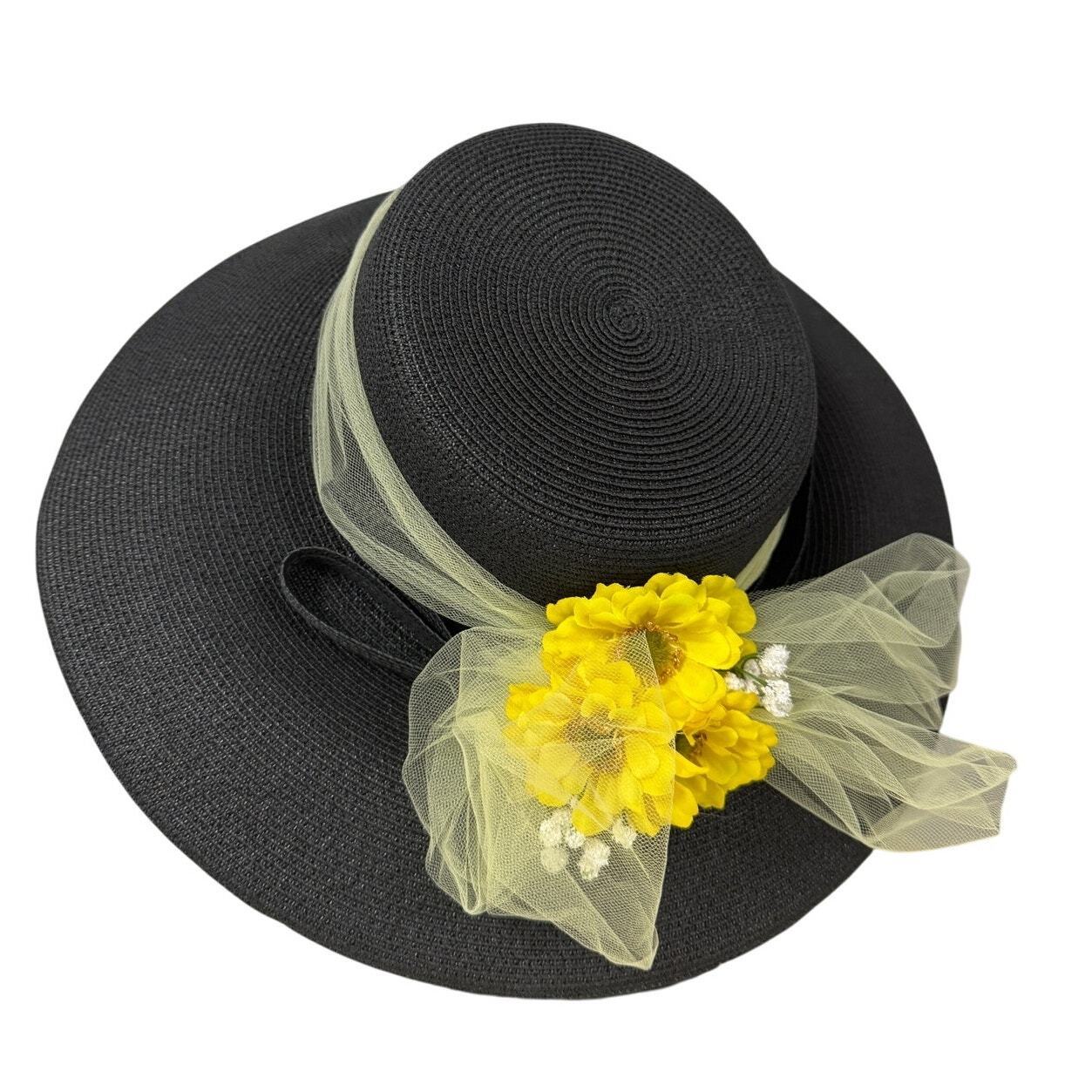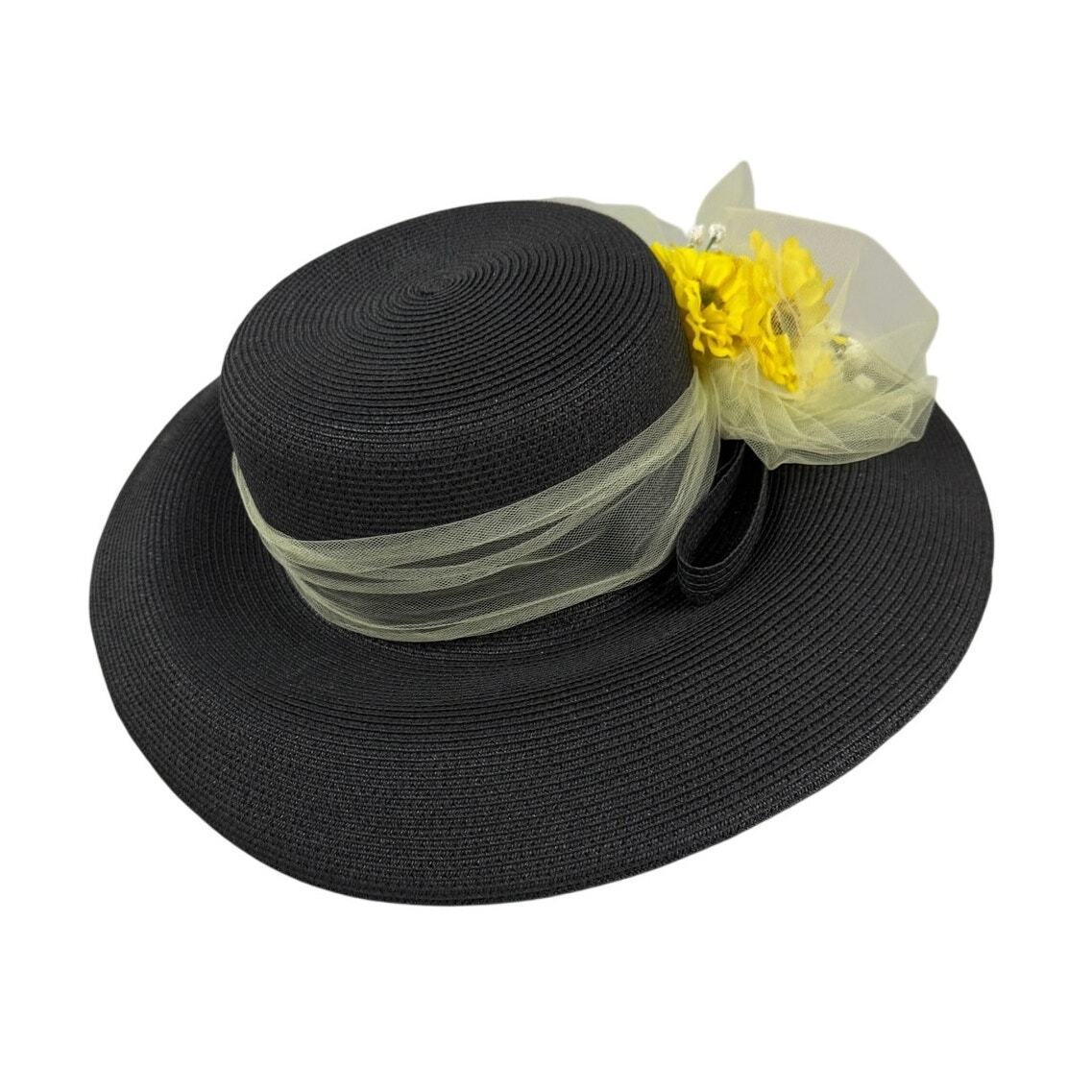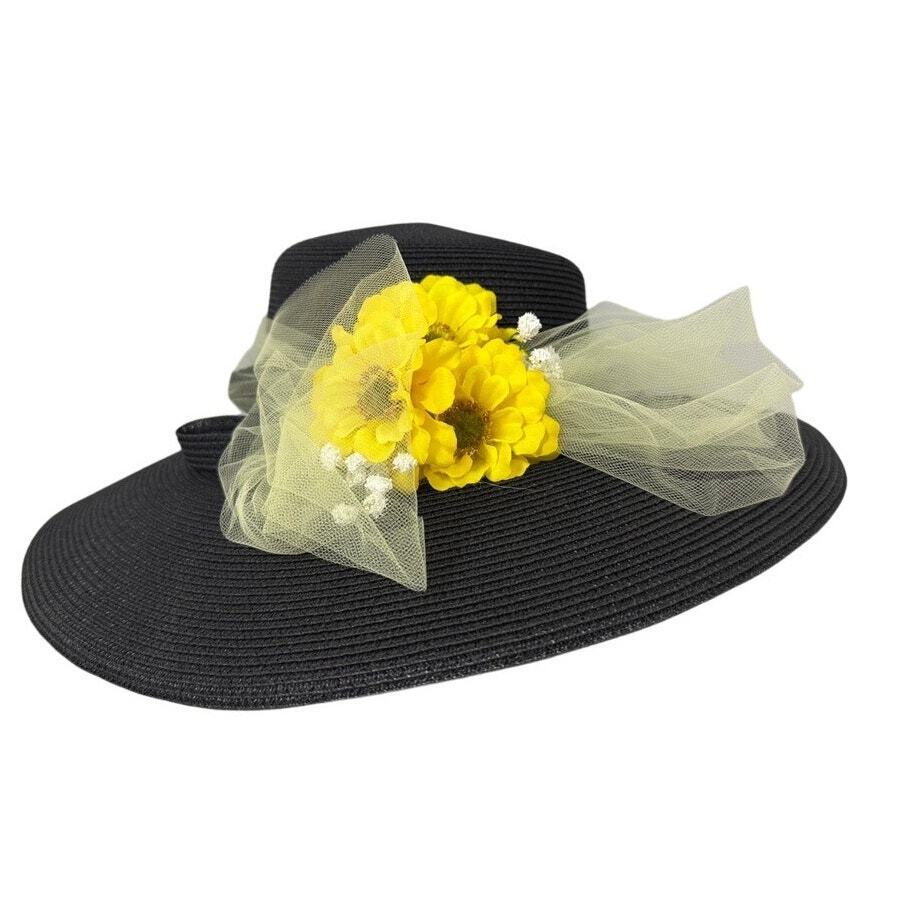 Eric Javits Wide Brim Hat Black Straw Yellow and 49 similar items