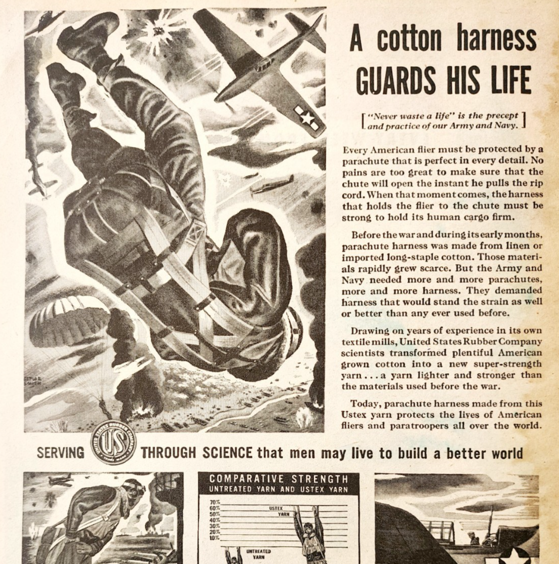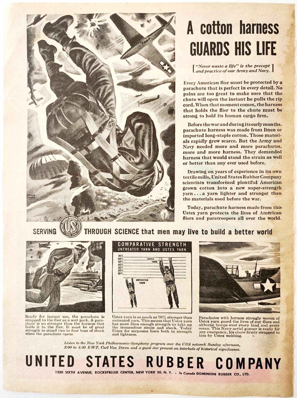 1944 US Rubber Company Paratroopers Advertisement WW2 Era Cotton Harness DWP7B