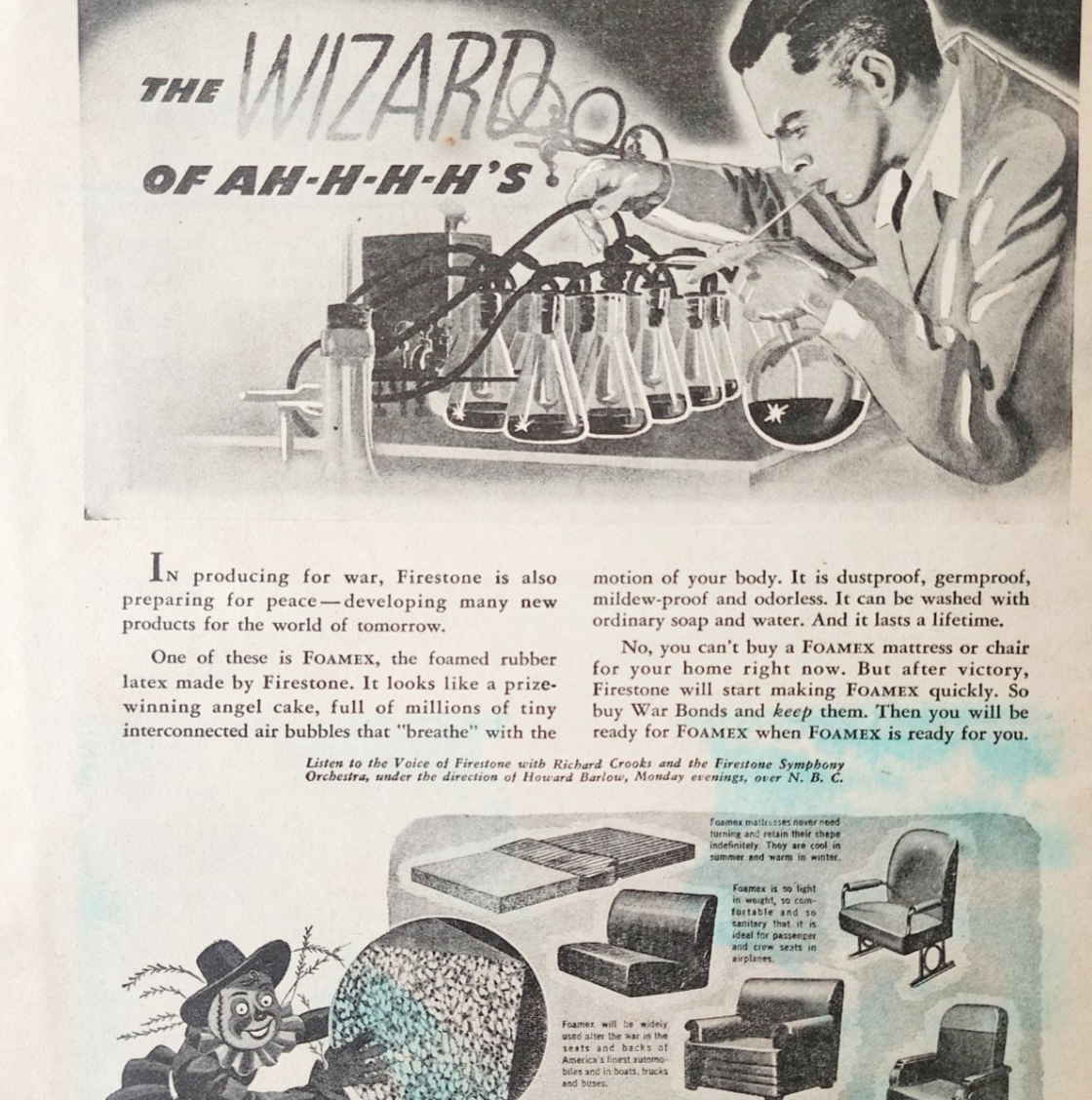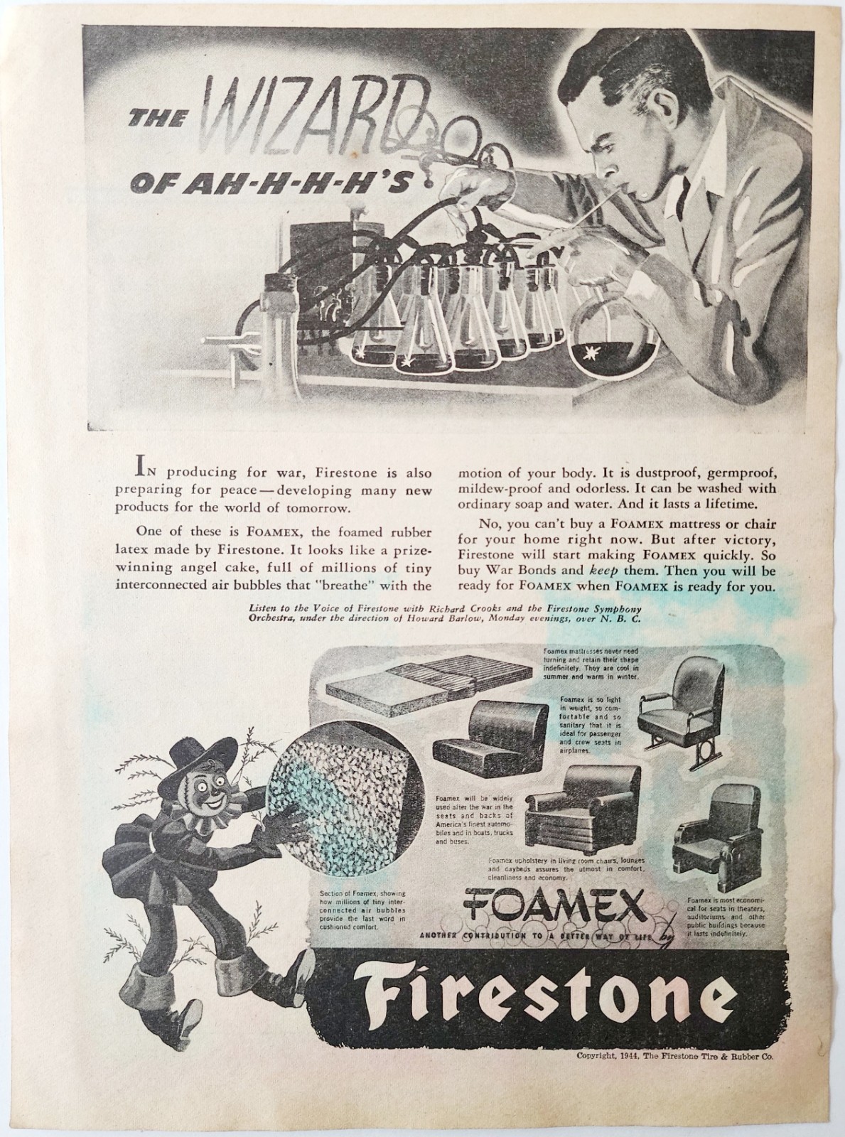 1944 Firestone Foamex Foam Advertisement Wizard Of Oz WW2 Era Furniture DWP7A