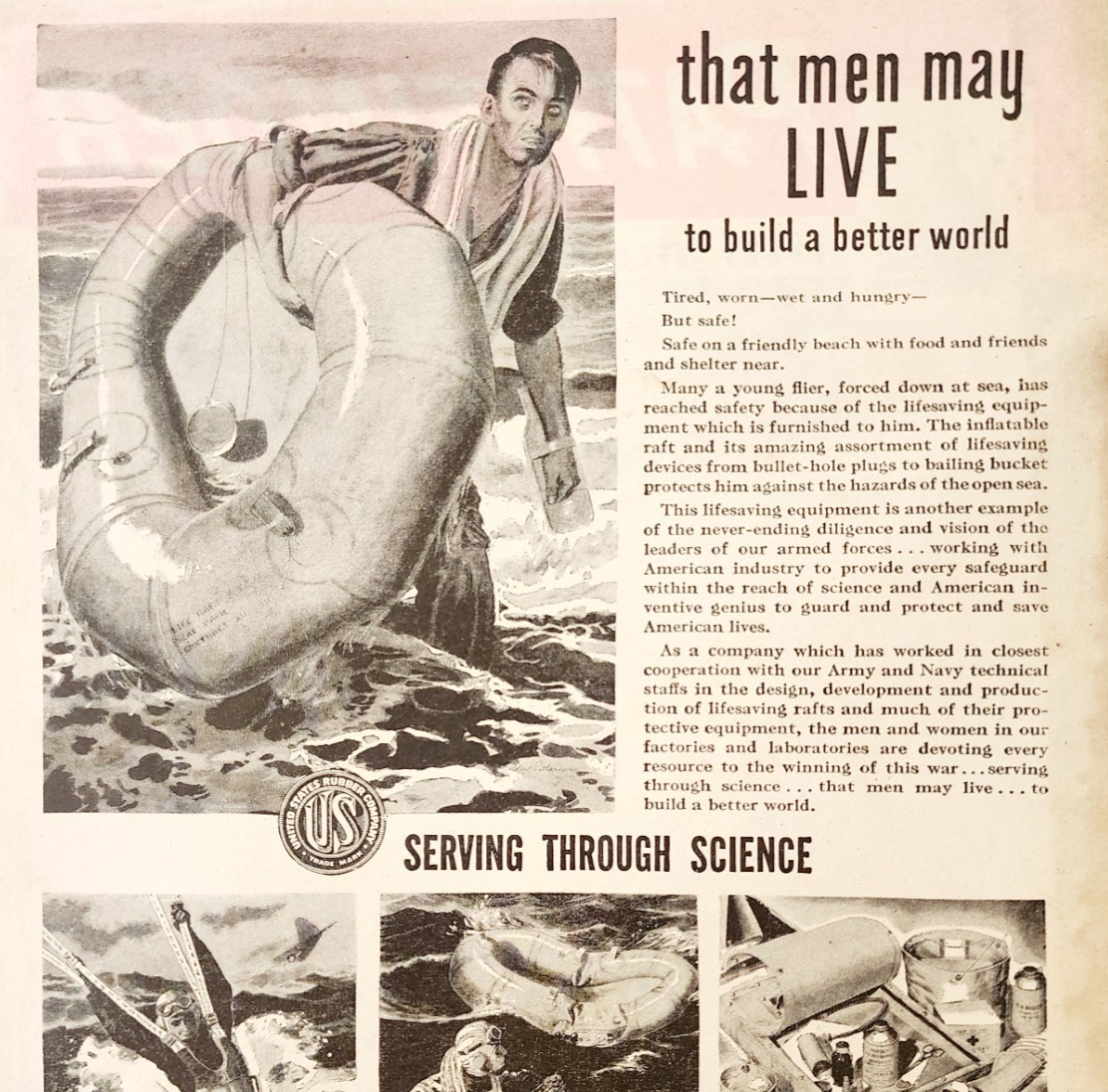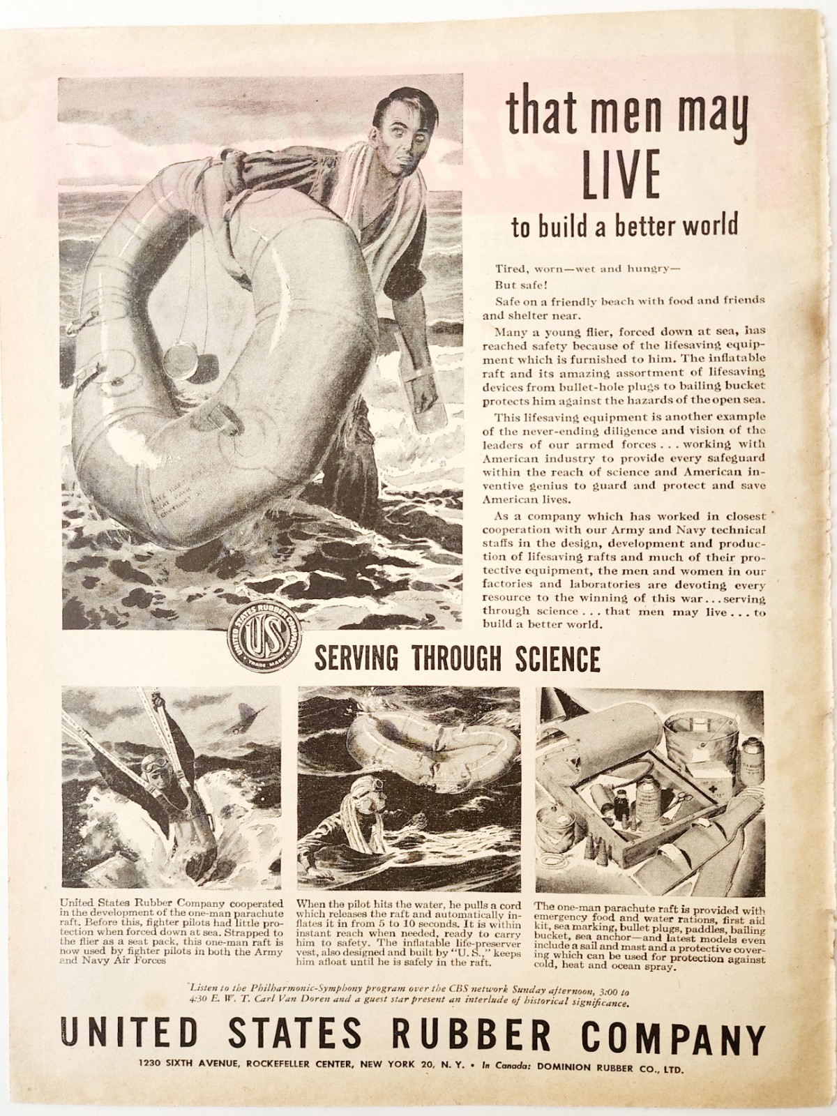 1944 US Rubber Company Water Rescue Advertisement WW2 Era Serving Science DWP7B