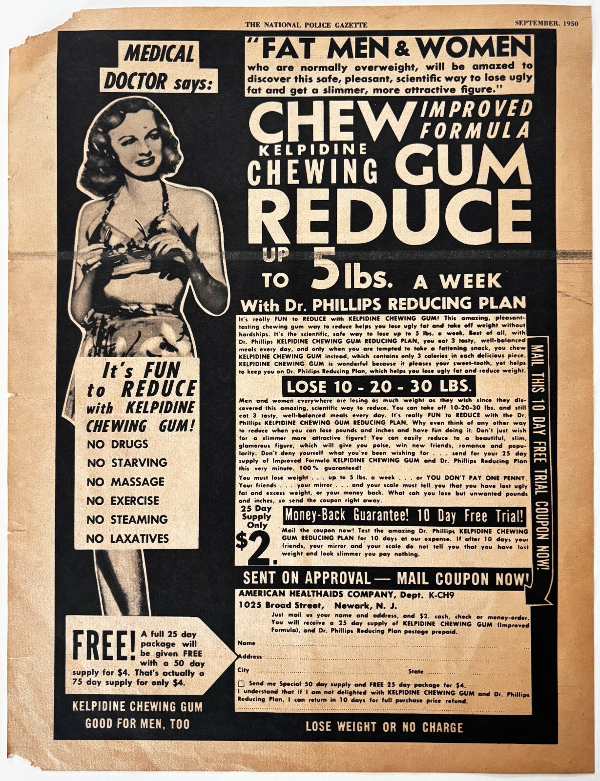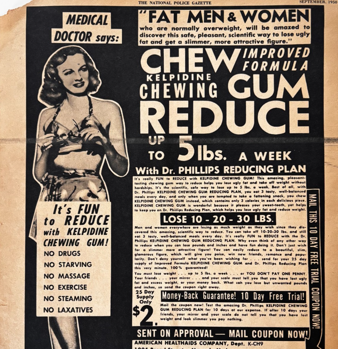 1950 Kelpidine Chewing Gum Advertisement Weight Loss Quack Medicine DWXX5