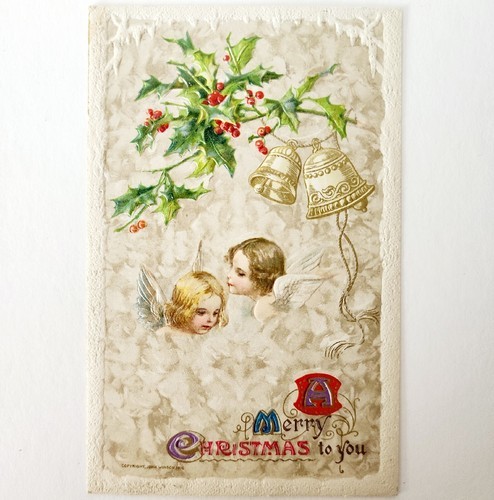 Merry Christmas John Winsch 1910 Greeting Postcard Embossed Angels PCBG6B