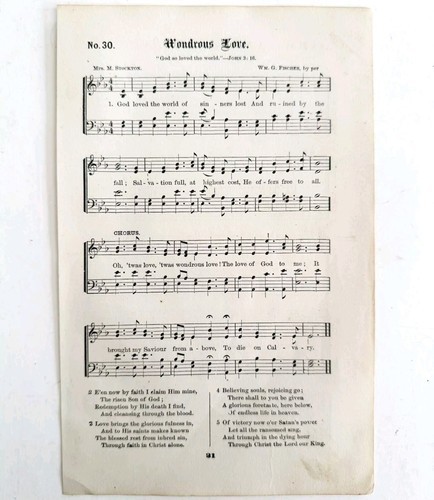 1883 Gospel Hymn Wonderous Love Sheet Music and 50 similar items