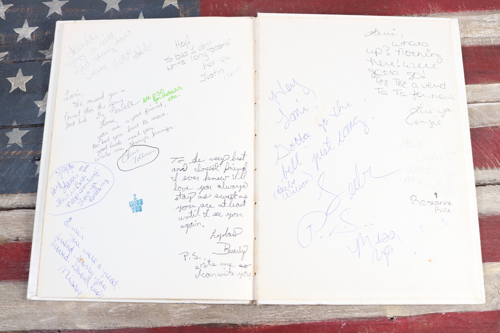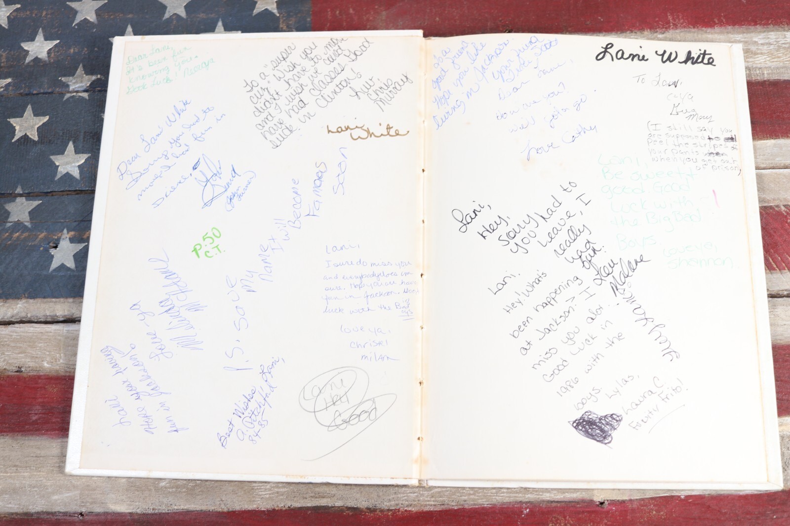 The product is a vintage 1984-1985 Milam Junior High School yearbook from Tupelo, Mississippi. This yearbook has been signed, adding a personal touch to this historical memorabilia piece. Perfect for collectors or those interested in educational history, this item offers a glimpse into the past of a specific school in the region during the 1980s.