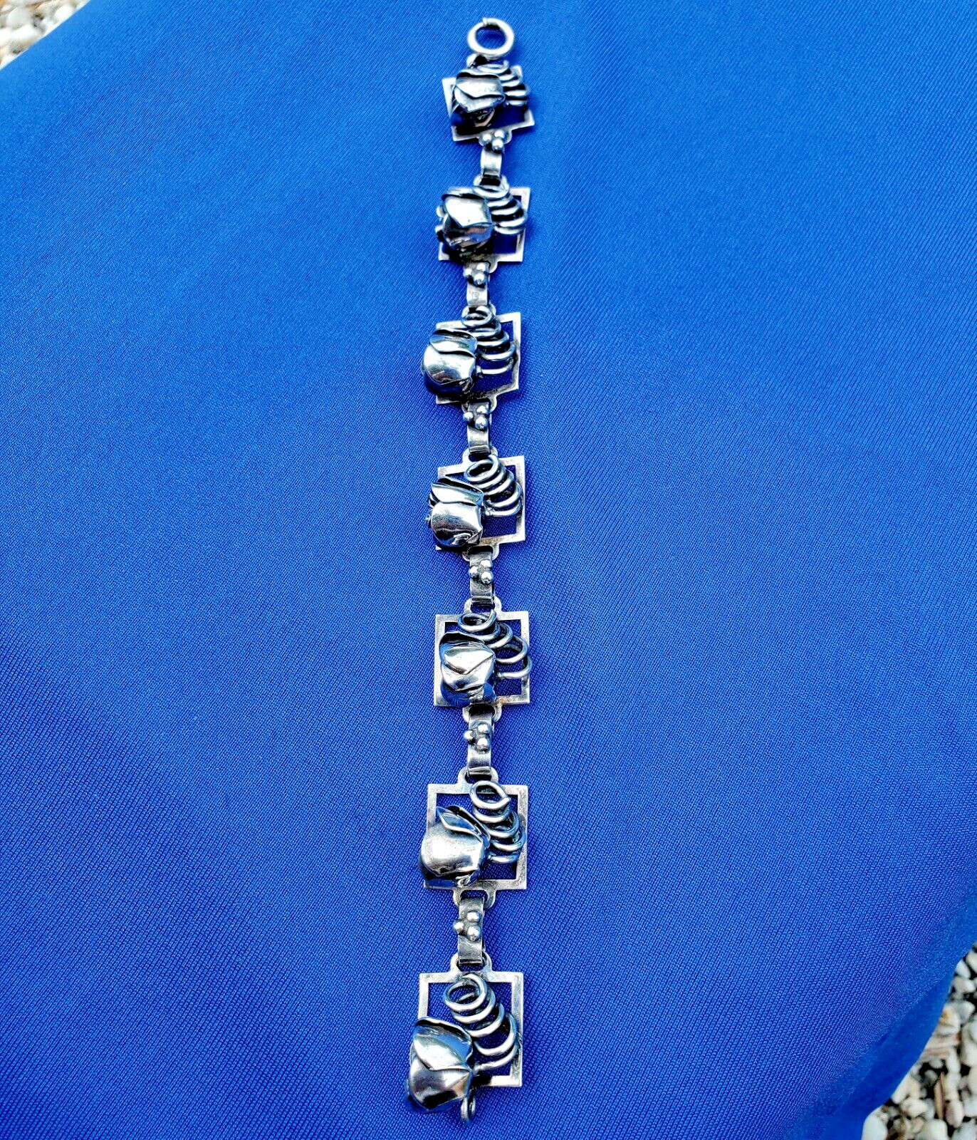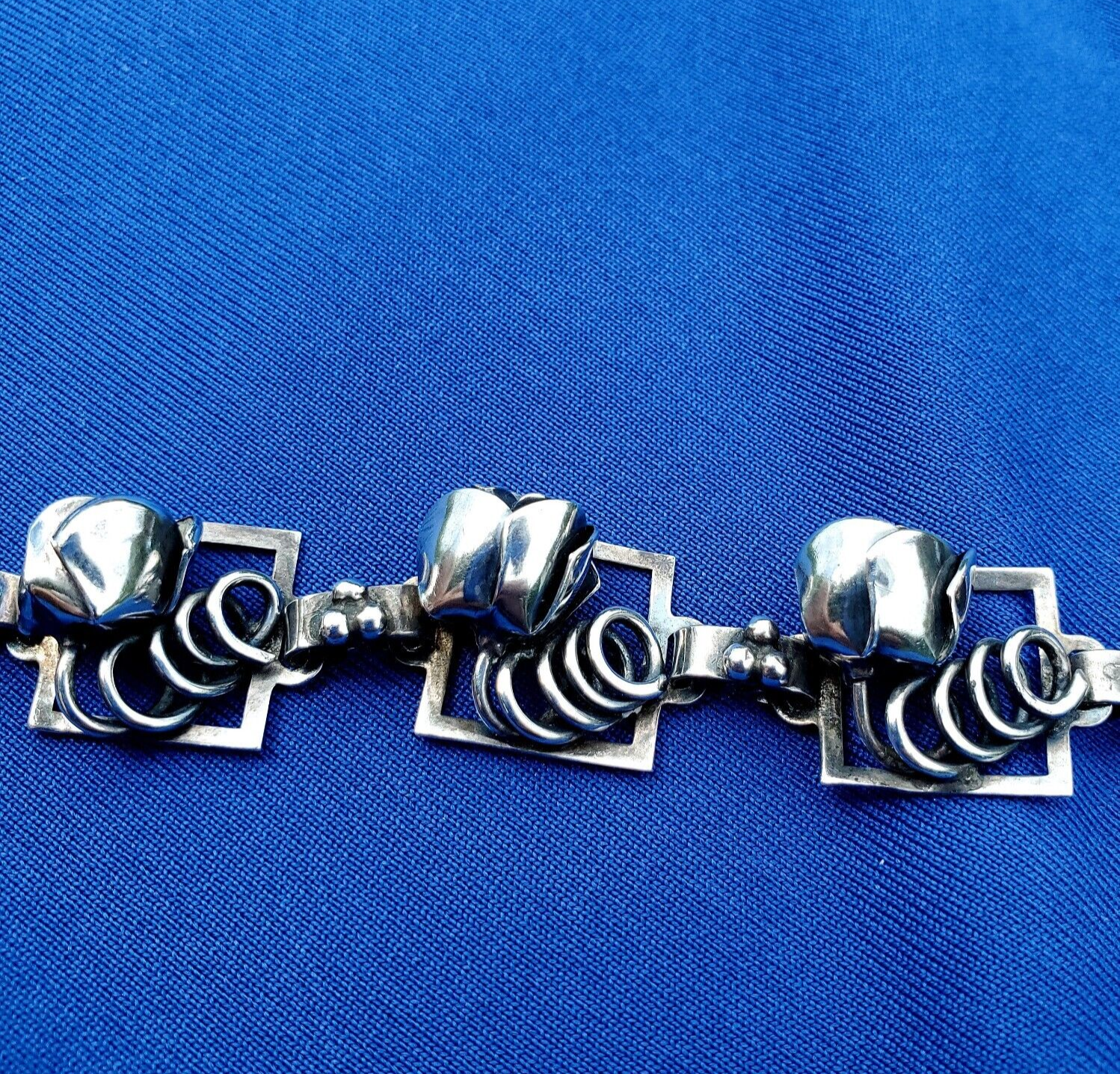 Elegant Design Art Deco Sterling Silver Bracelet Unique Vintage Rose Nature Gift