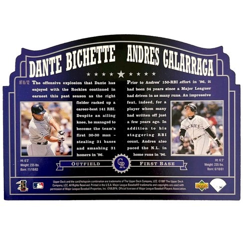 Upper Deck Bichette Galarraga HTH Trading Card 1997 Baseball OS XL MLB BGS1
