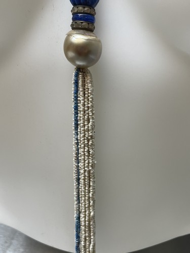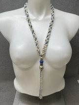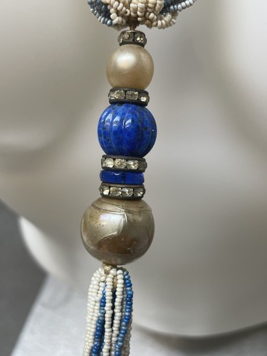 Vintage Blue White Handmade Beaded Tassel Necklace KG JD
