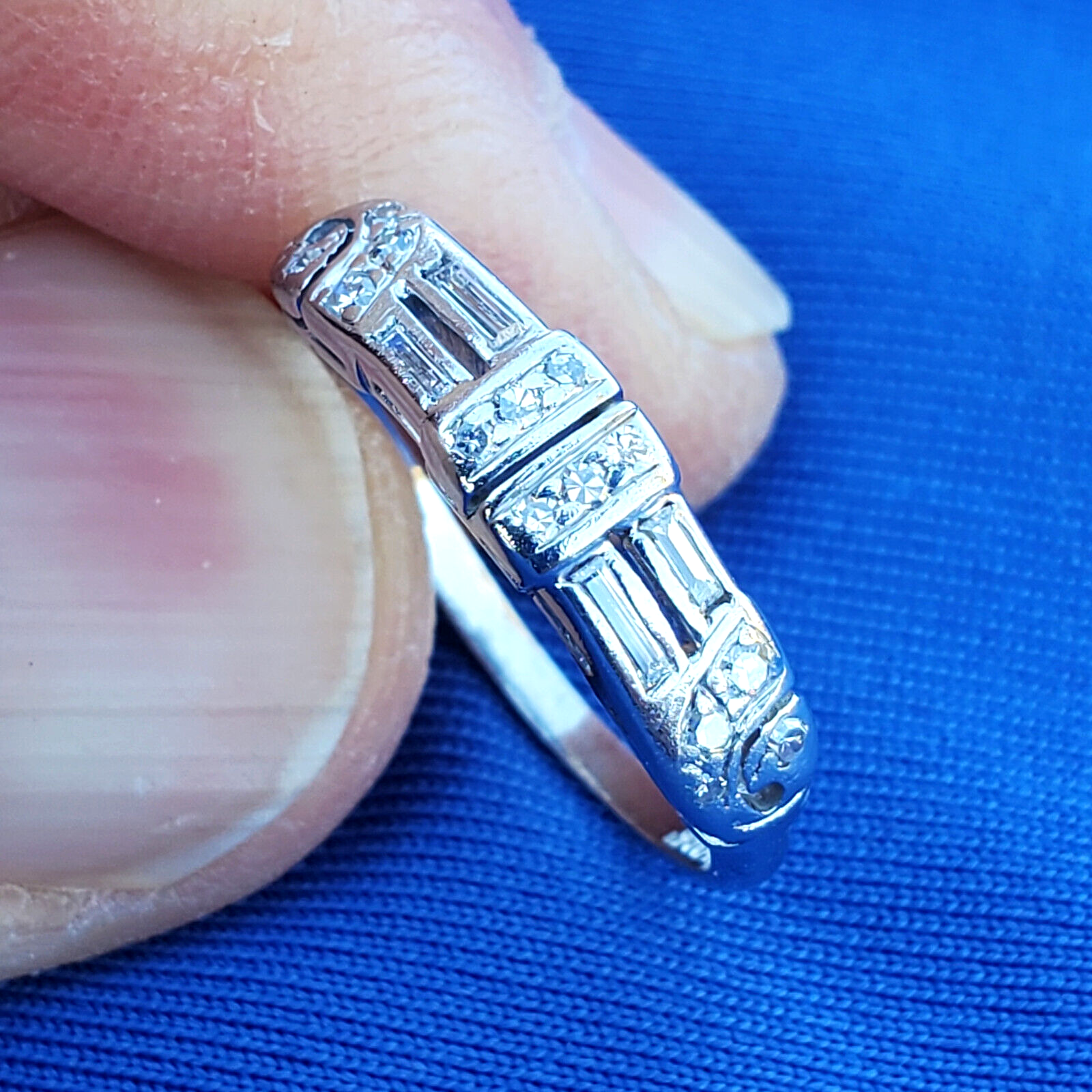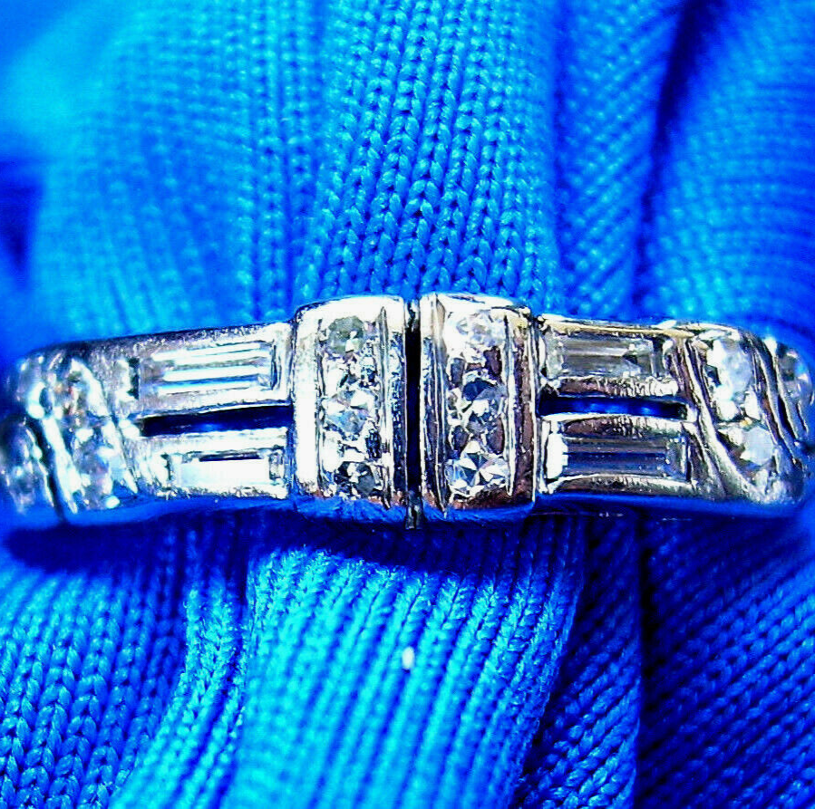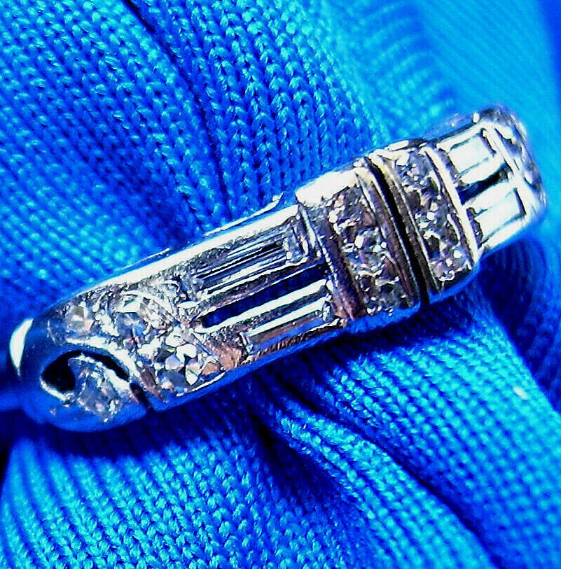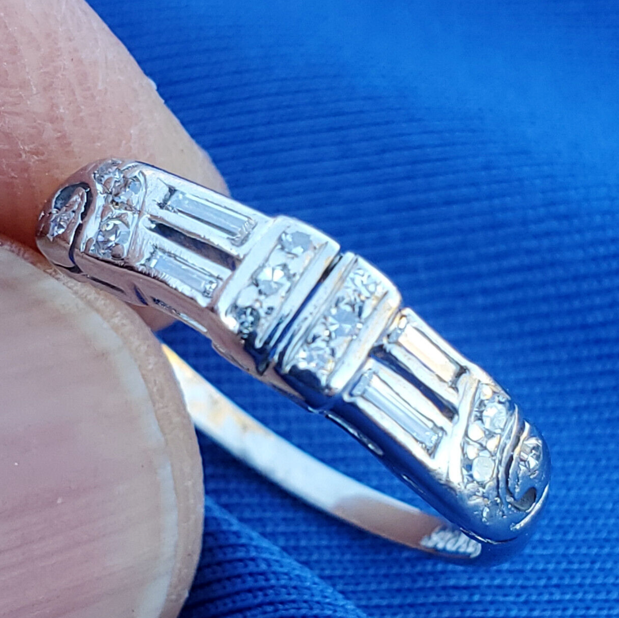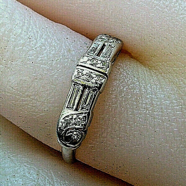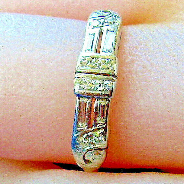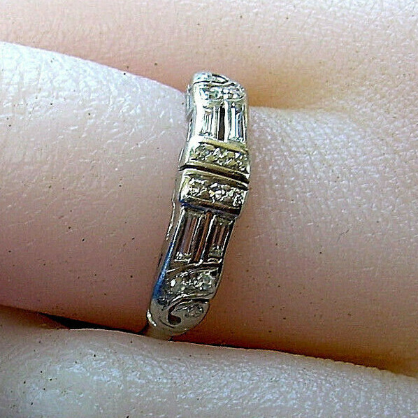 Earth mined Diamond Deco Wedding Band Antique Platinum Bridal Hand made Ring 5.5