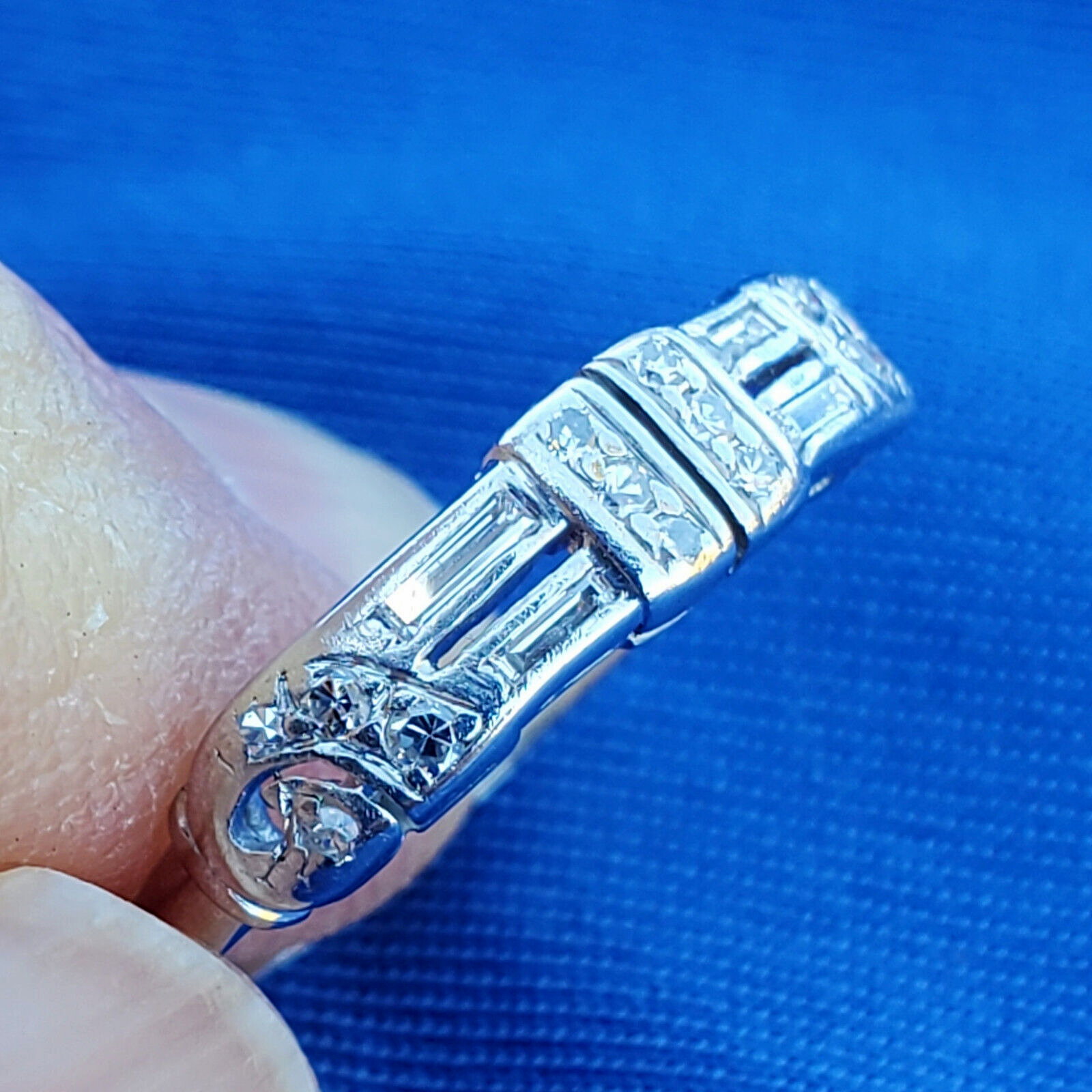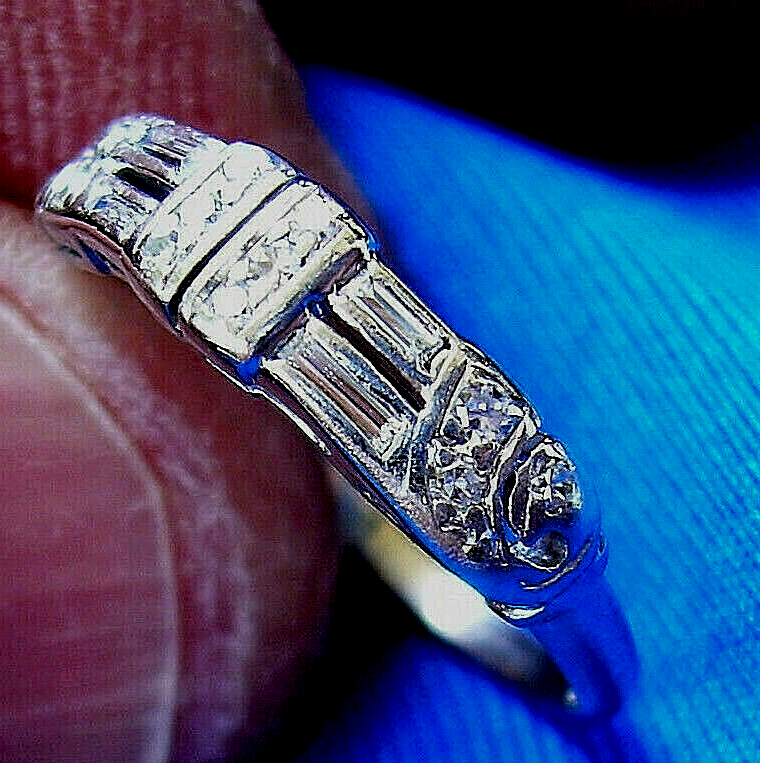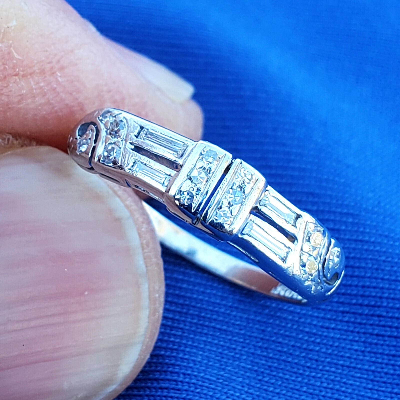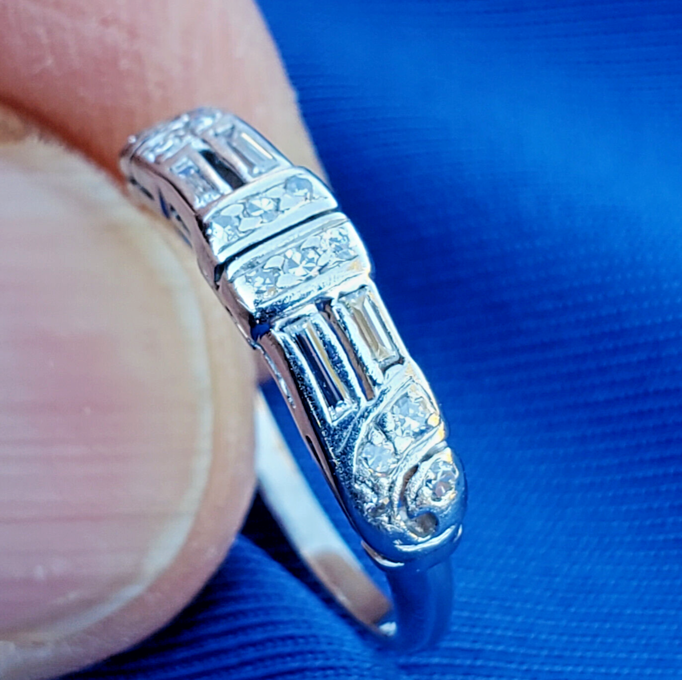 Earth mined Diamond Deco Wedding Band Antique Platinum Bridal Hand made Ring 5.5