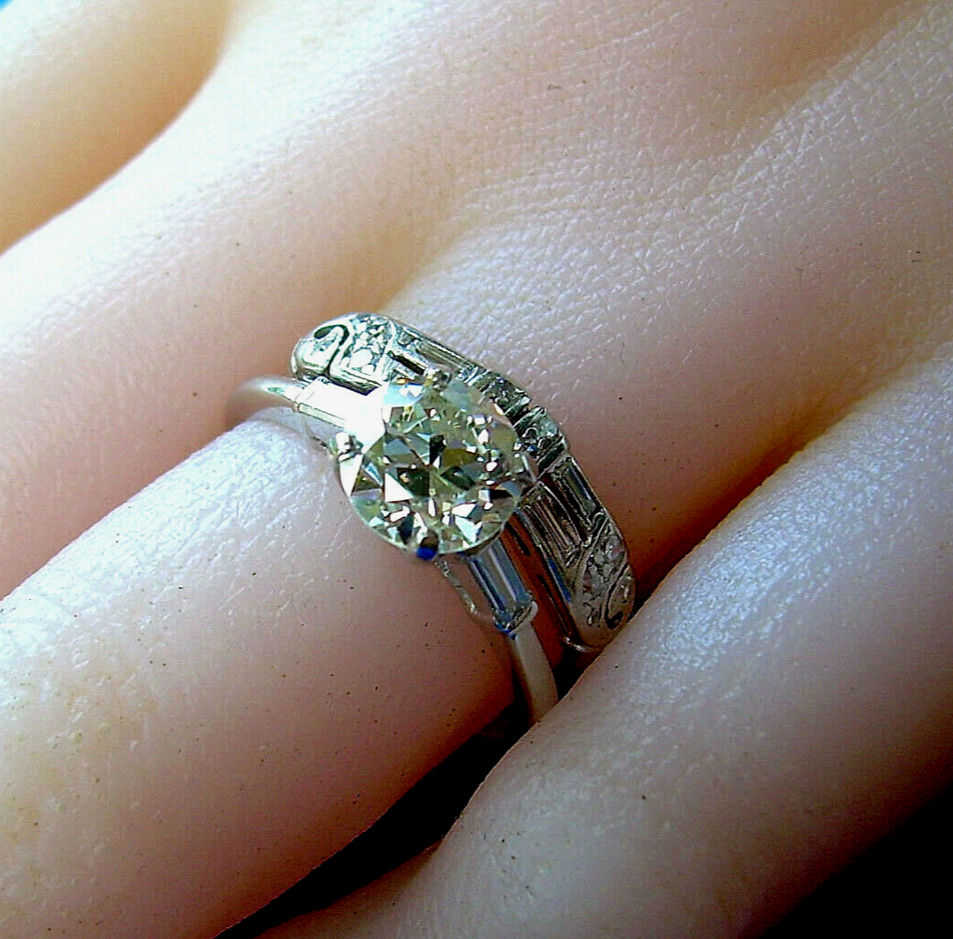 ANTIQUE DIAMOND PLATINUM GATSBY STYLE RING.