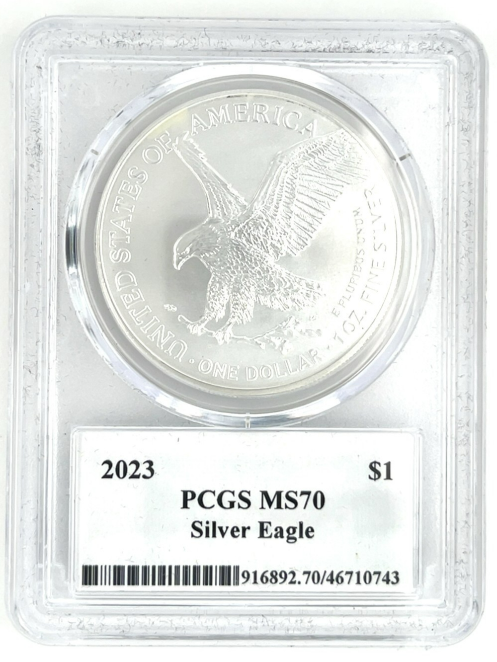 2023 $1 American Silver Eagle Valutato Da PCGS Come MS70 Premier Prima Edizione