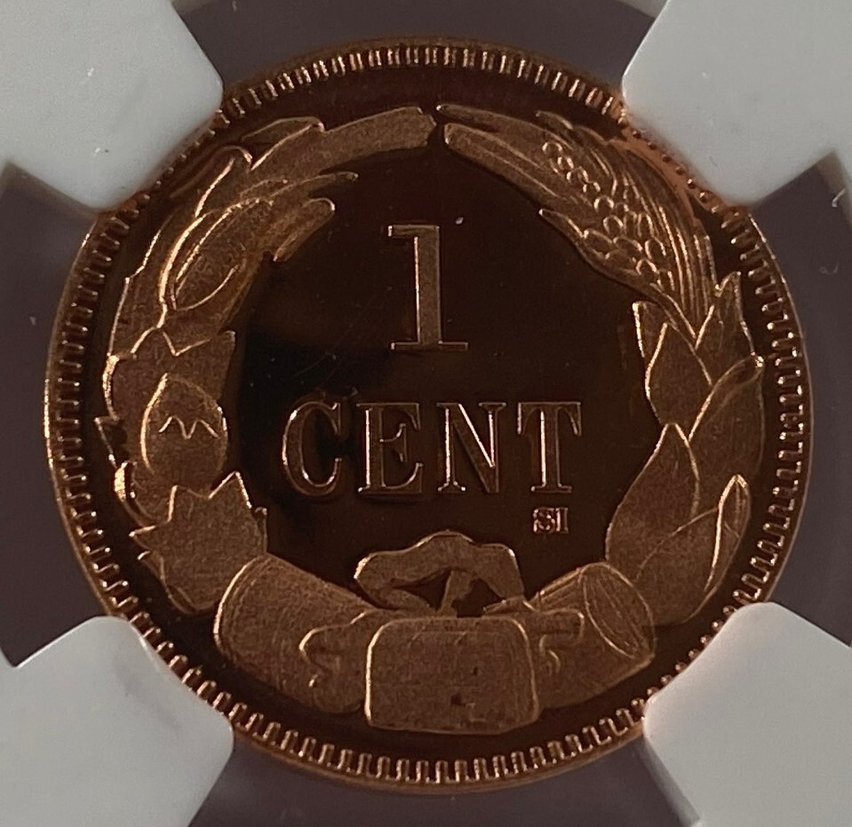 1861 Centavo confederado Cobre Smithsonian Restrike 2011 Prueba de gemas NGC