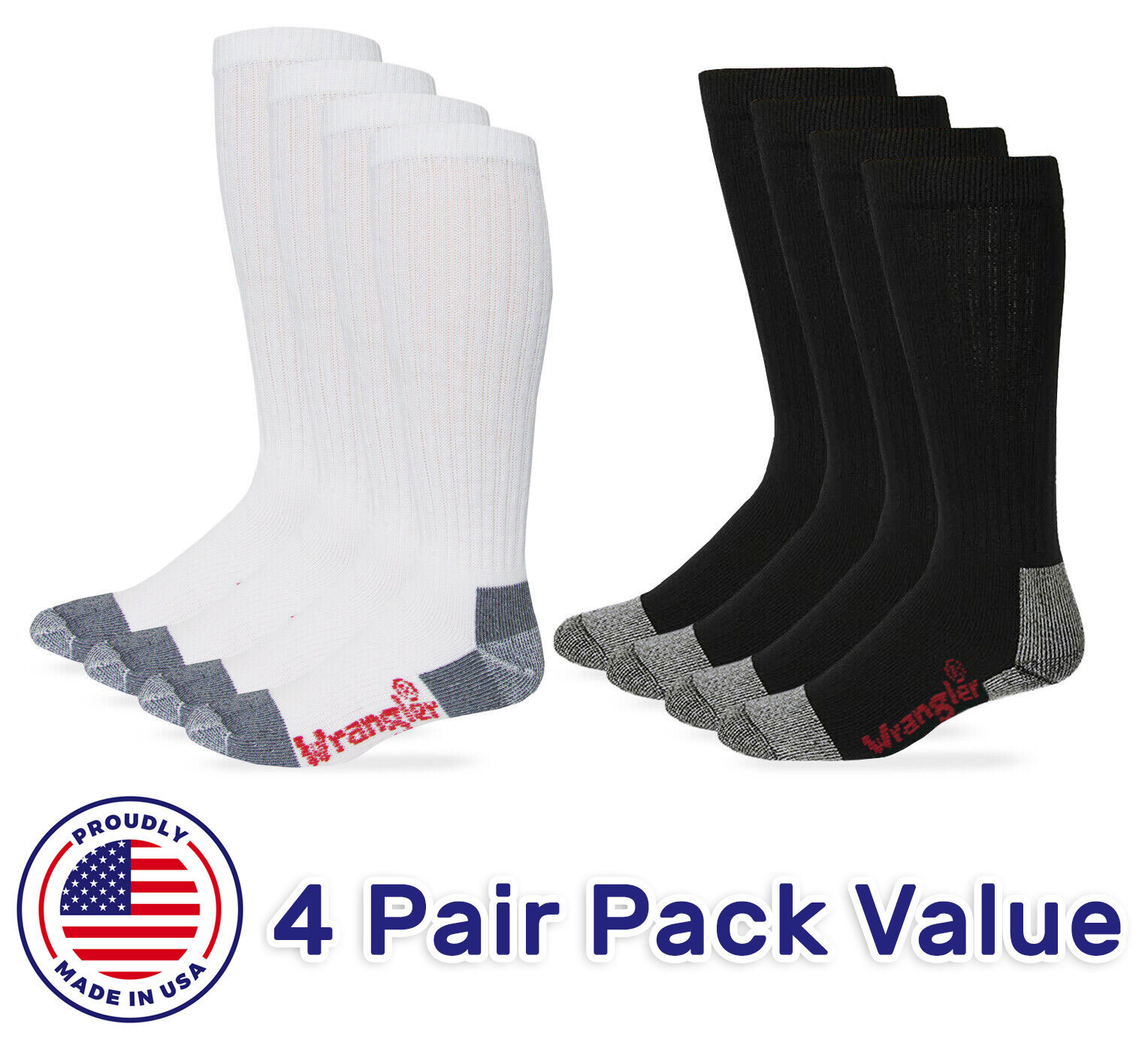 Wrangler Riggs Workwear Mens Tall 80% Cotton Cushion Over the Calf Boot Socks 4P