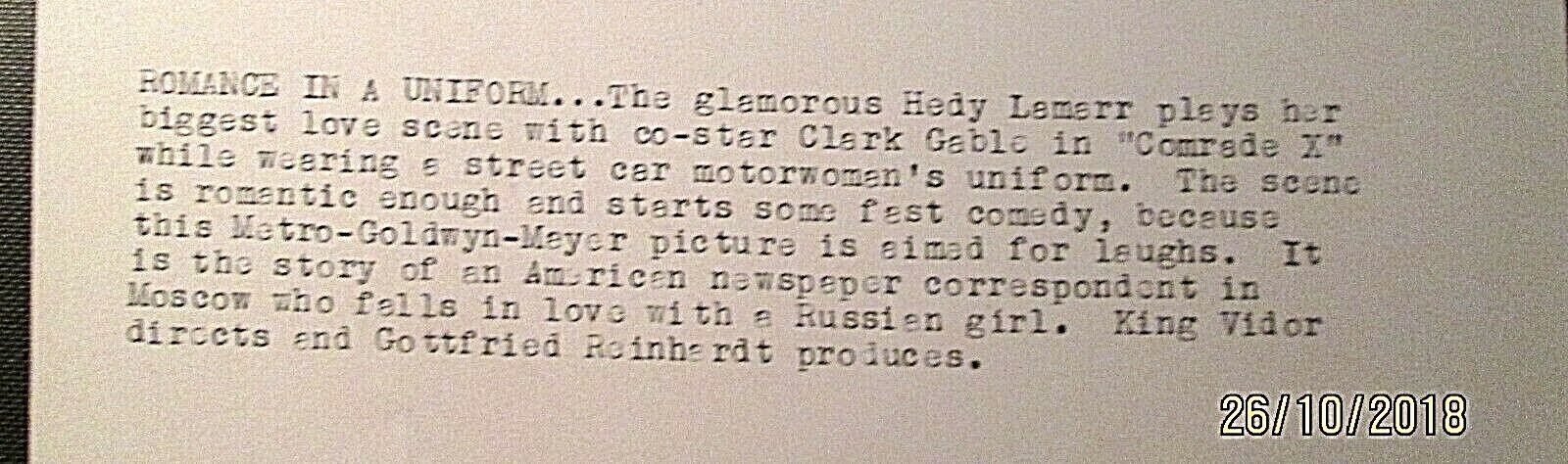 Clark Gable Hedy Lamarr (Comrade X) Orig, and 50 similar items