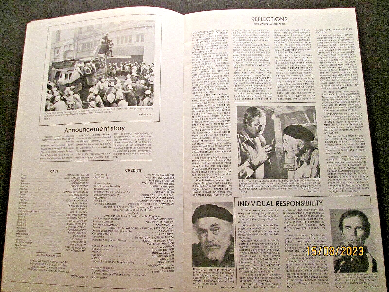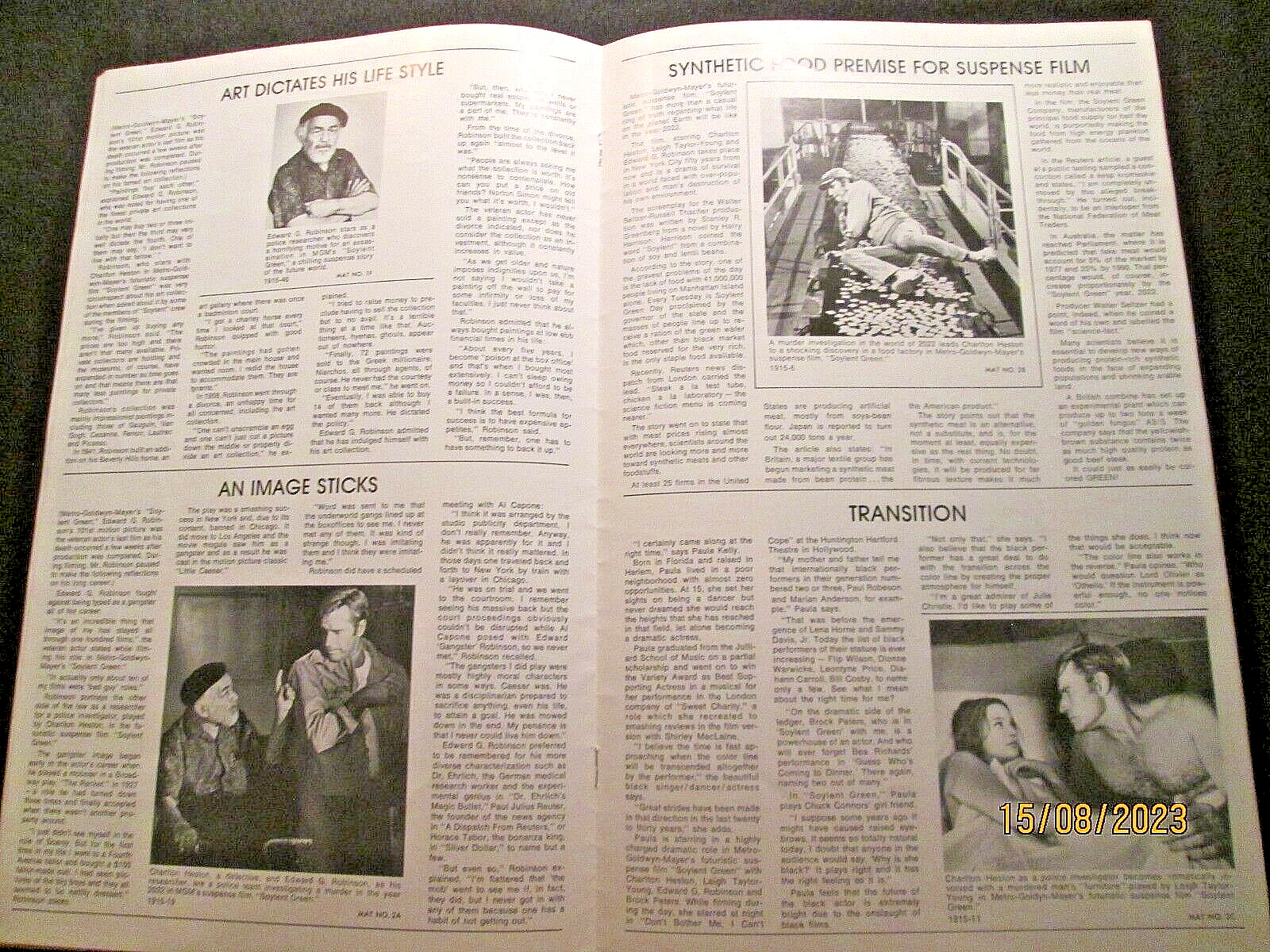 CHARLTON HESTON: EDWARD G ROBERTSON (SOYLENT GREEN) 0RIG,1973 MOVIE PRESSBOOK