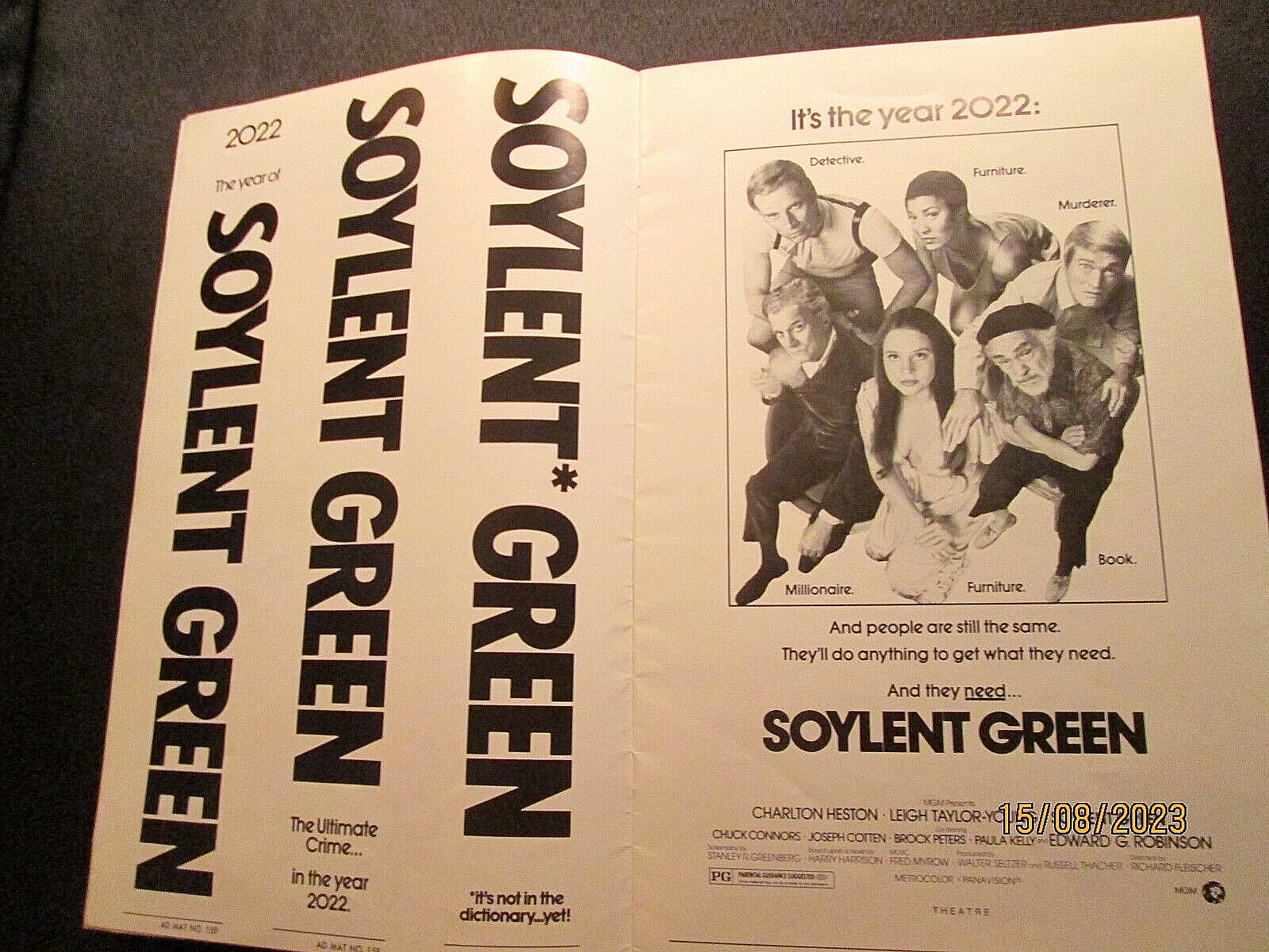 CHARLTON HESTON: EDWARD G ROBERTSON (SOYLENT GREEN) 0RIG,1973 MOVIE PRESSBOOK added to cart.