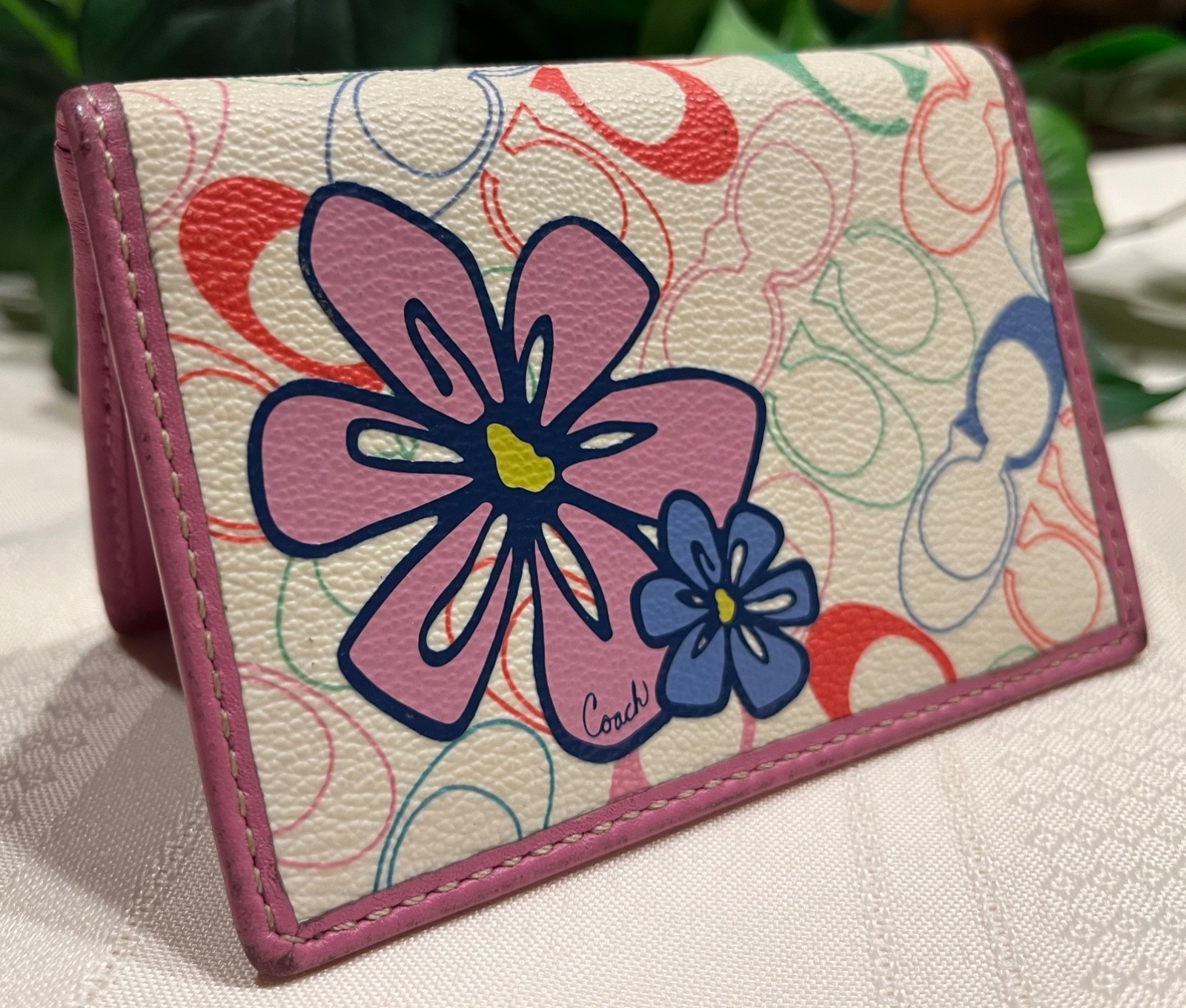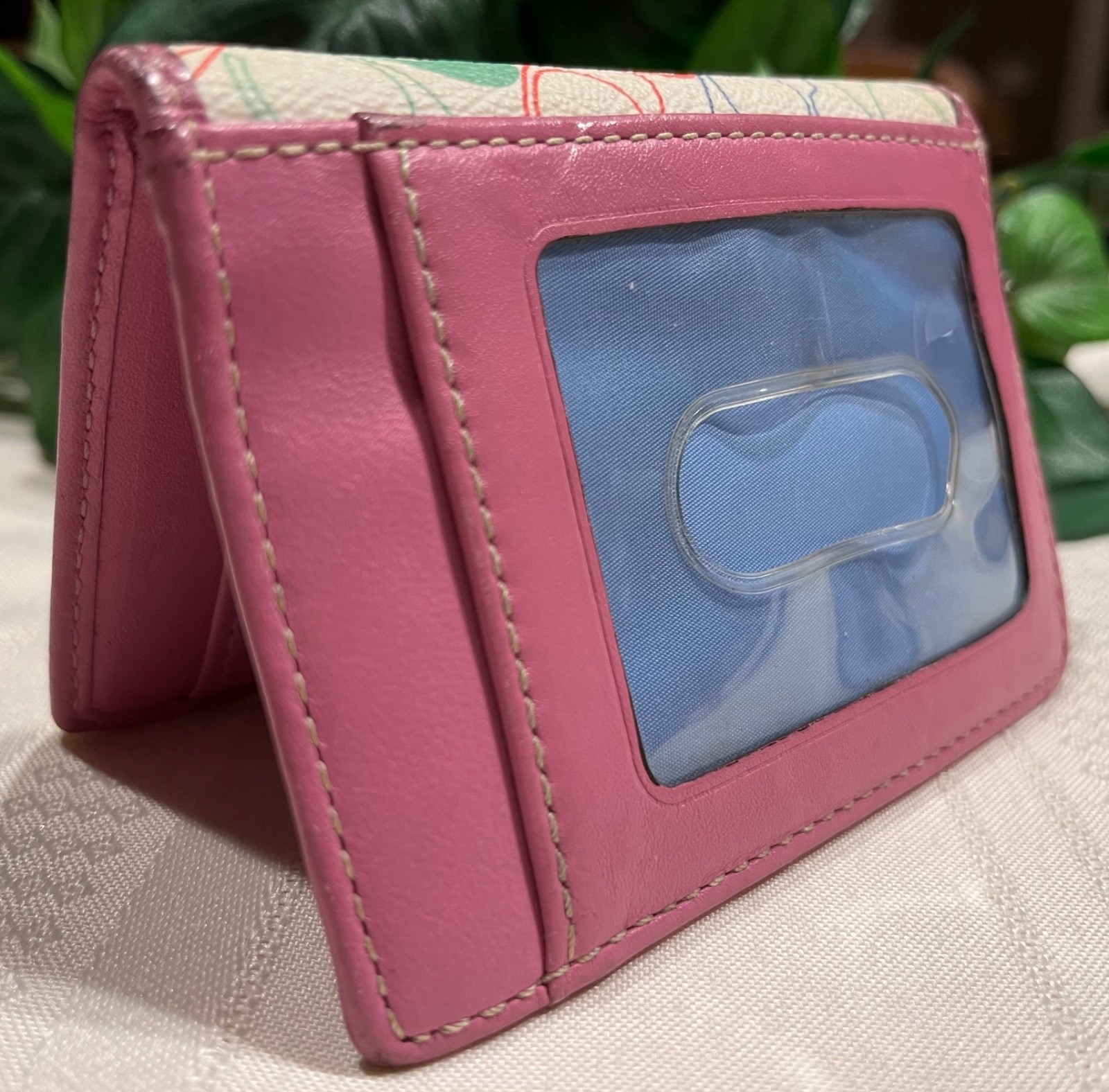 Coach Card Wallet ID Case Bias Signature Flower Bifold Pink Multicolor