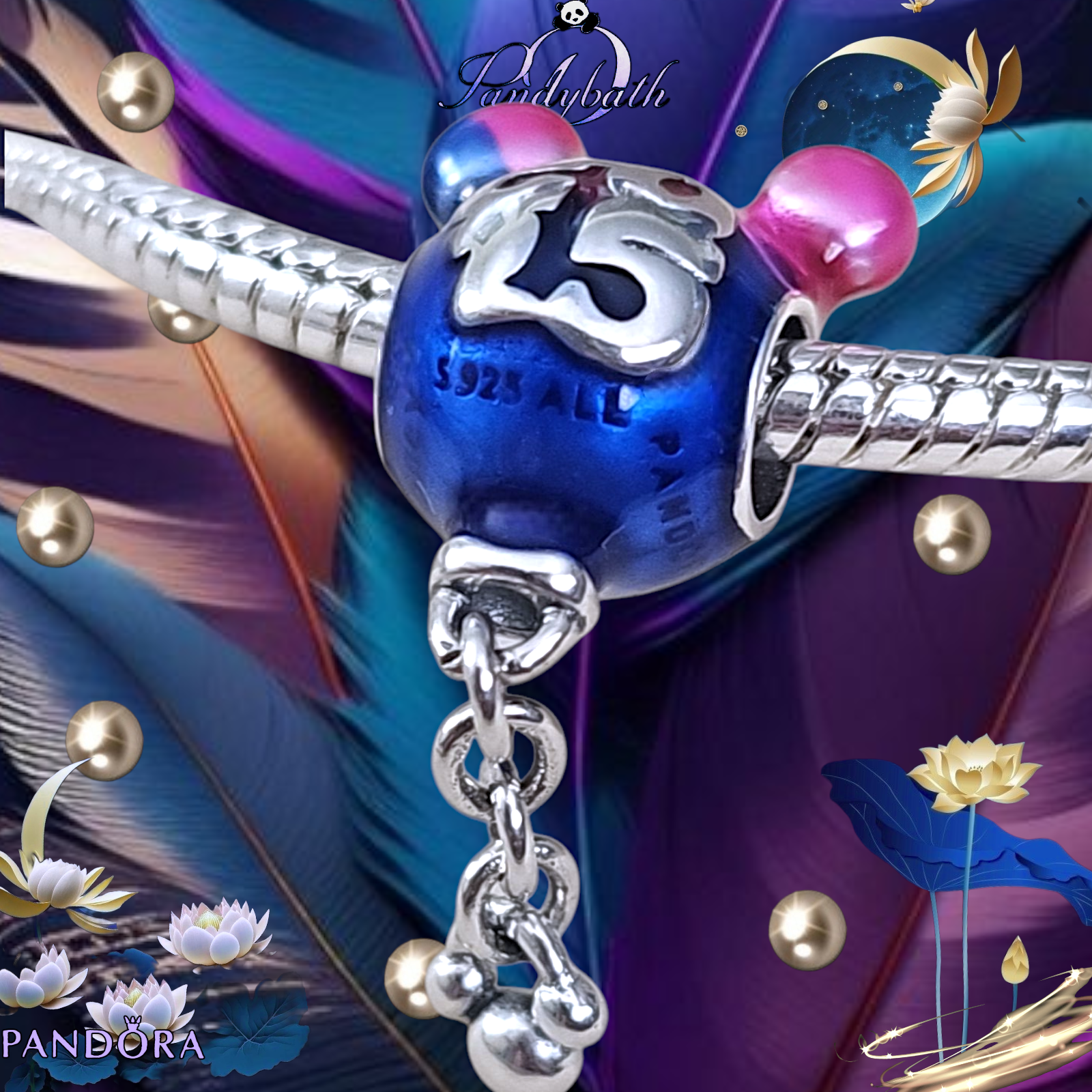 Authentic Pandora Sterling Silver Bracelet in Purple and European Charms![]() ![]() ![]() ![]()