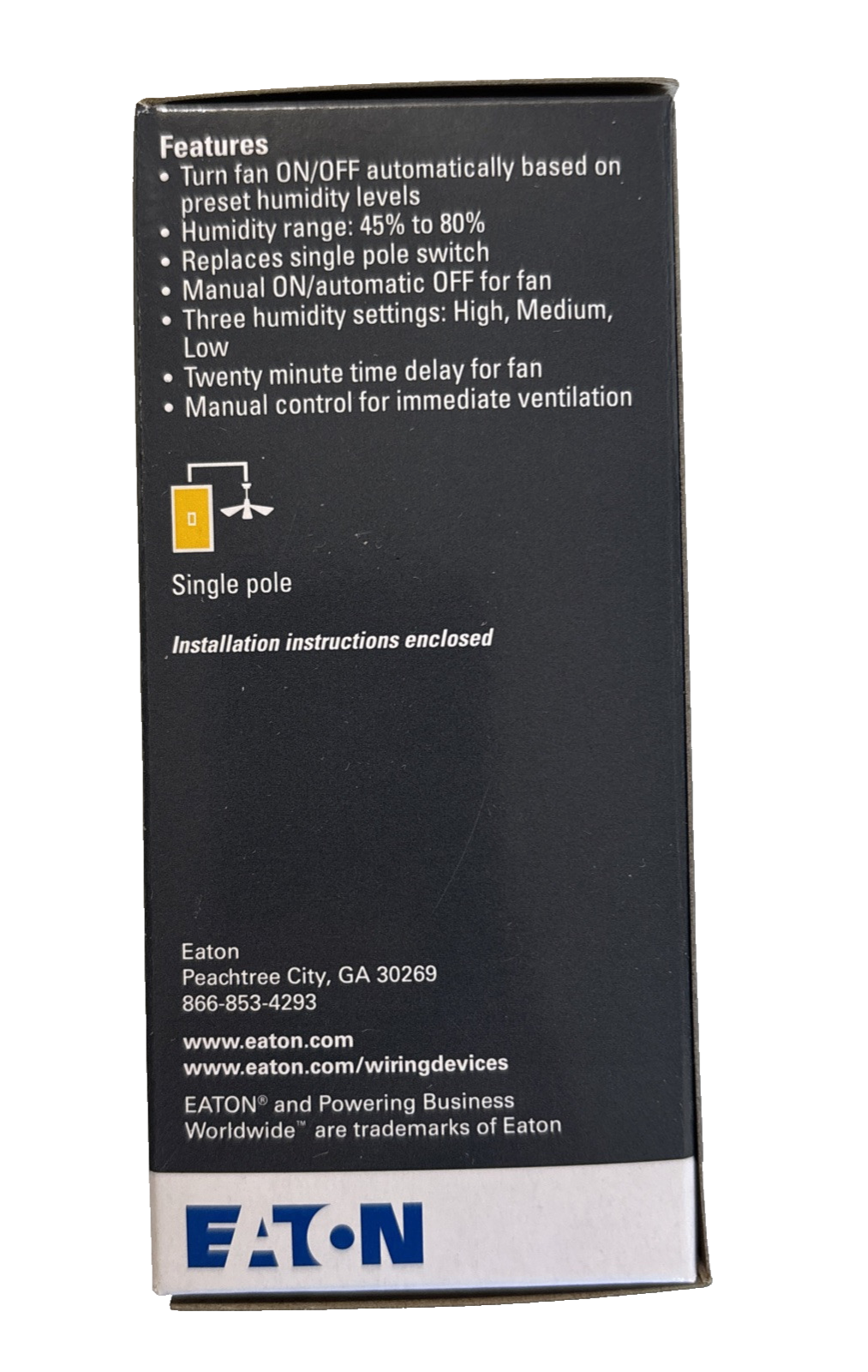 Eaton Humidity sensor and fan control switch 120V HDFS3P1