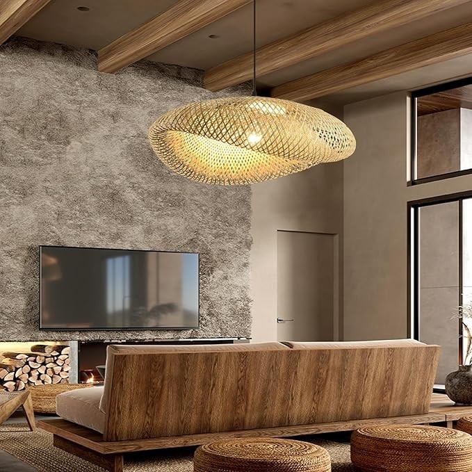 23.64" Bamboo Pendant Lights,Bohemian Large Rattan Chandelier, Hand Woven Wicker