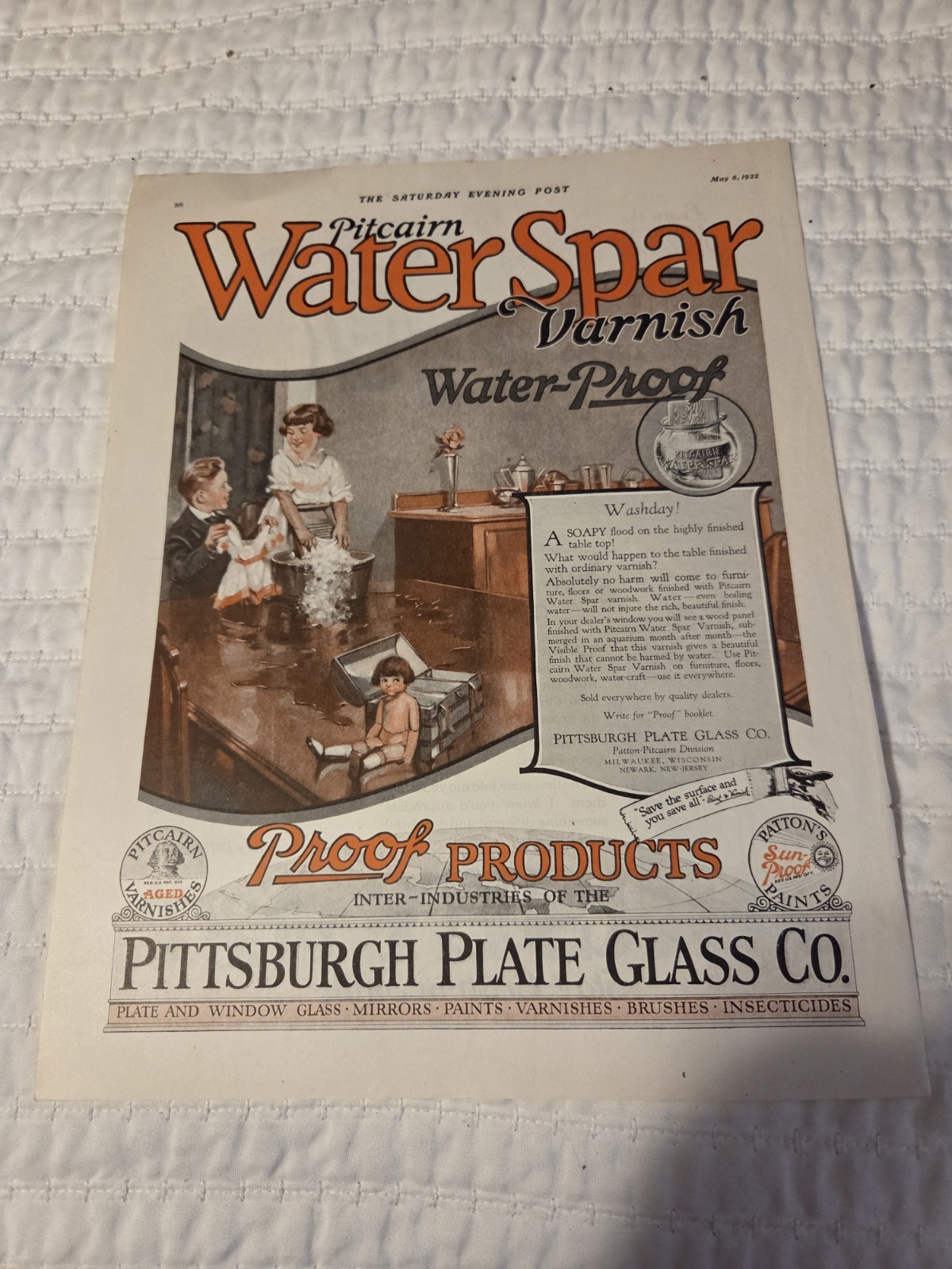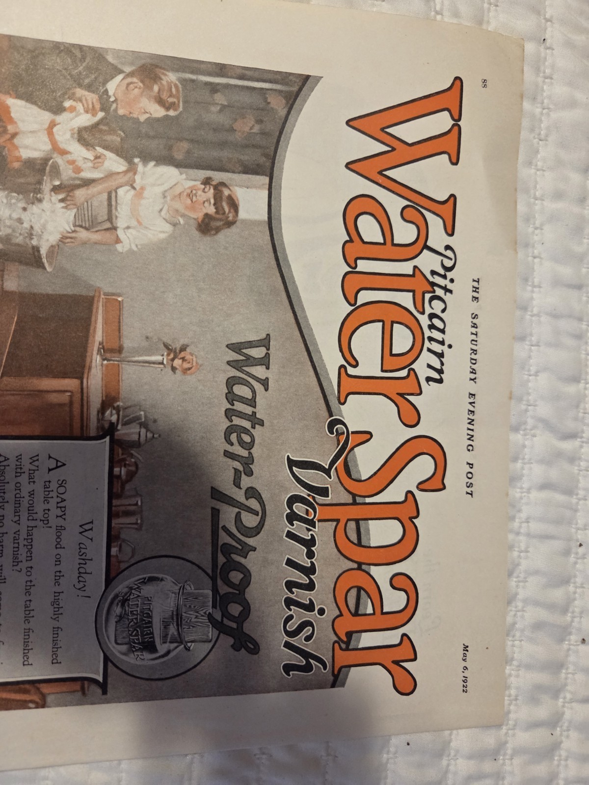 PITCAIRN WATER SPAR VARNISH - Original Vintage 1922 Full-Page Color Print Ad