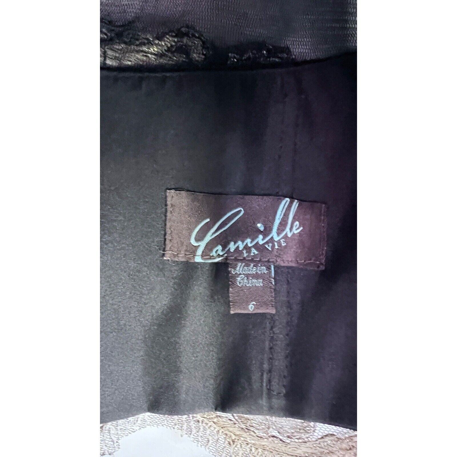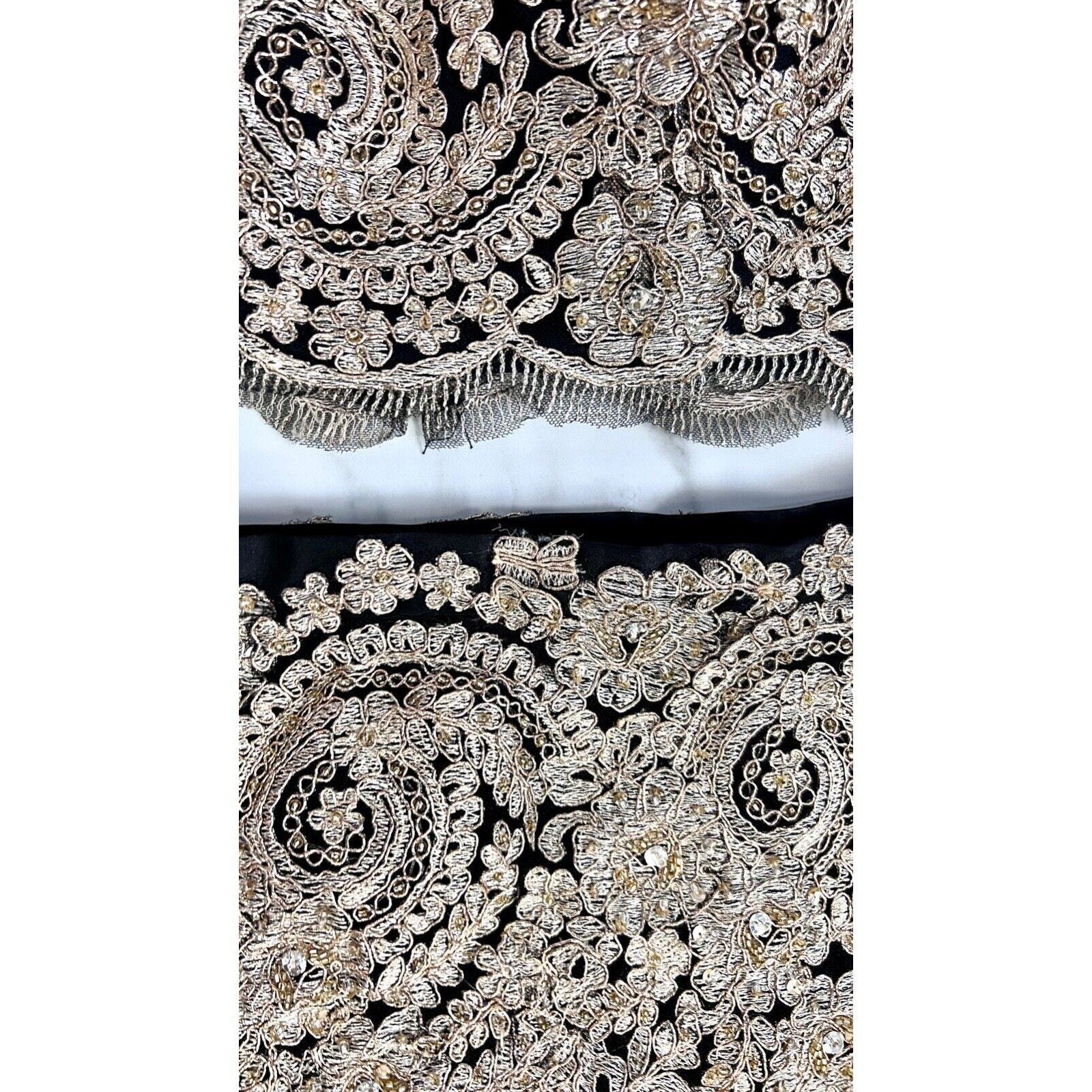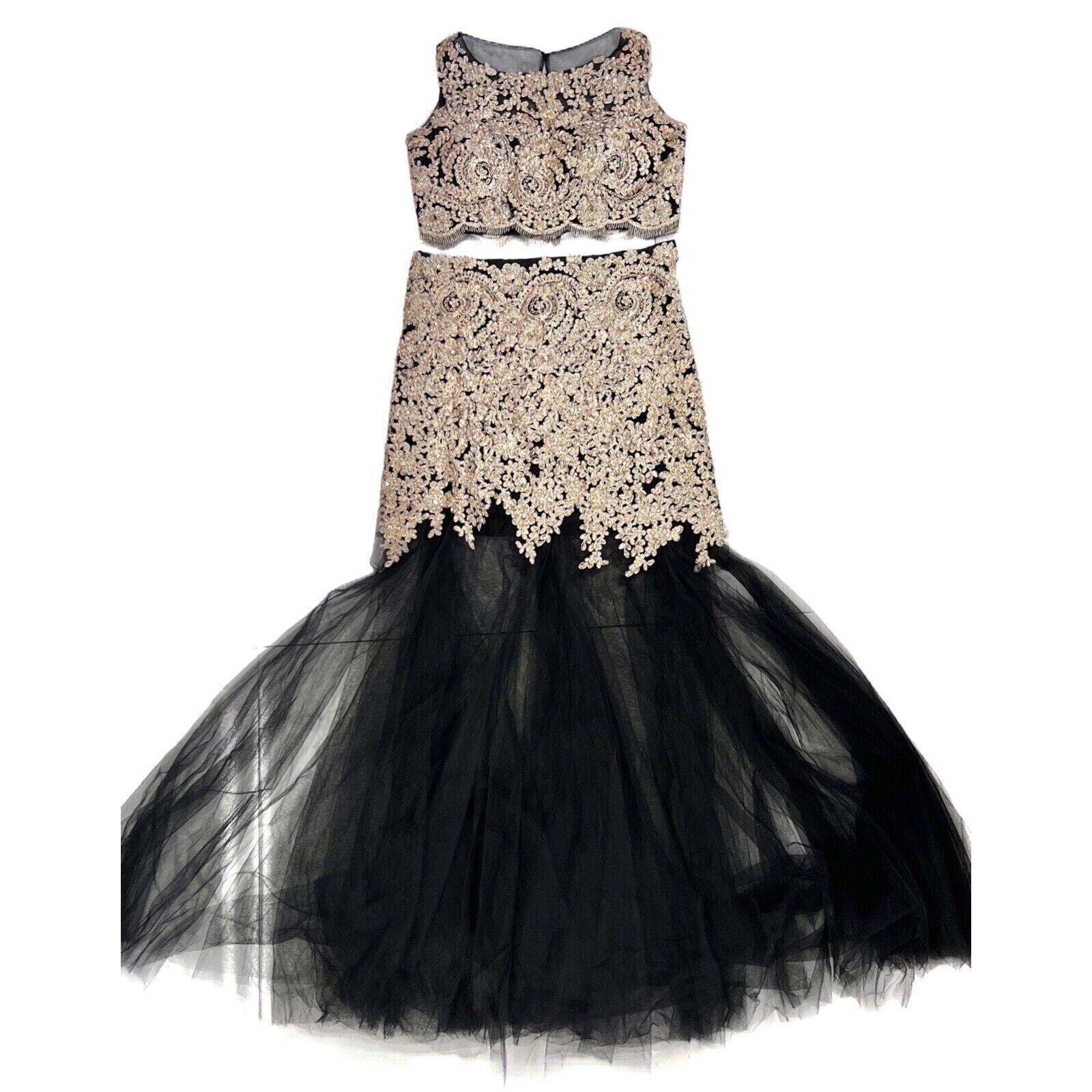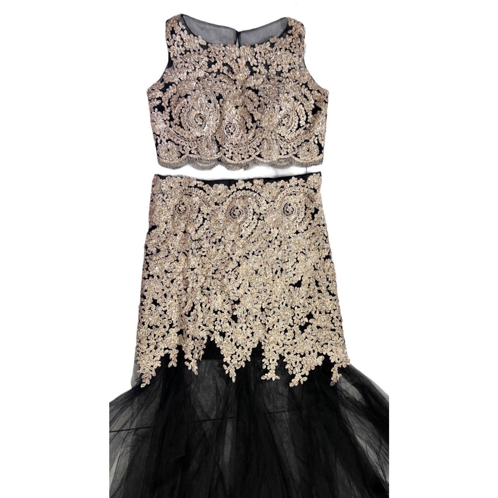 STUNNING Camille La Vie Black Lace Gold Lace Beaded Embroidered 2 Pc Dress Sz 6