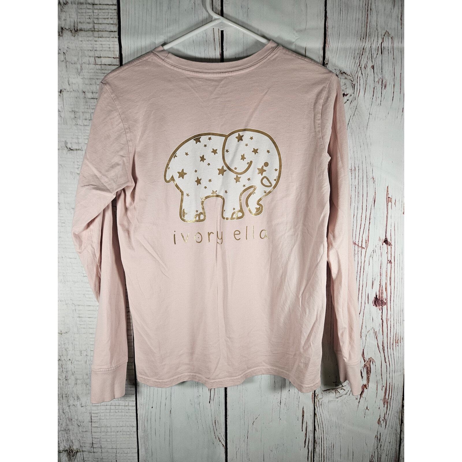 Ivory Ella Girls TShirt Size XS Long Sleeve Pink Gold Elephant