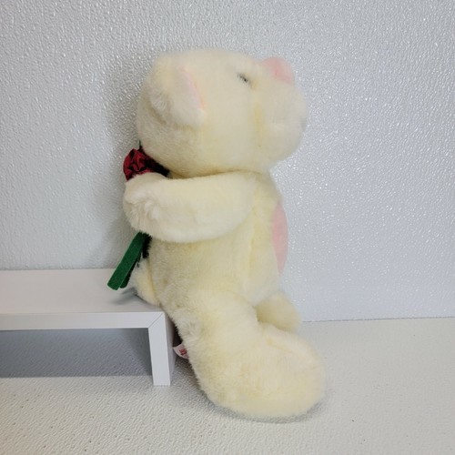 Russ Berrie Calvin Plush Bear Cream White With Red Roses Pink Heart - Valentine