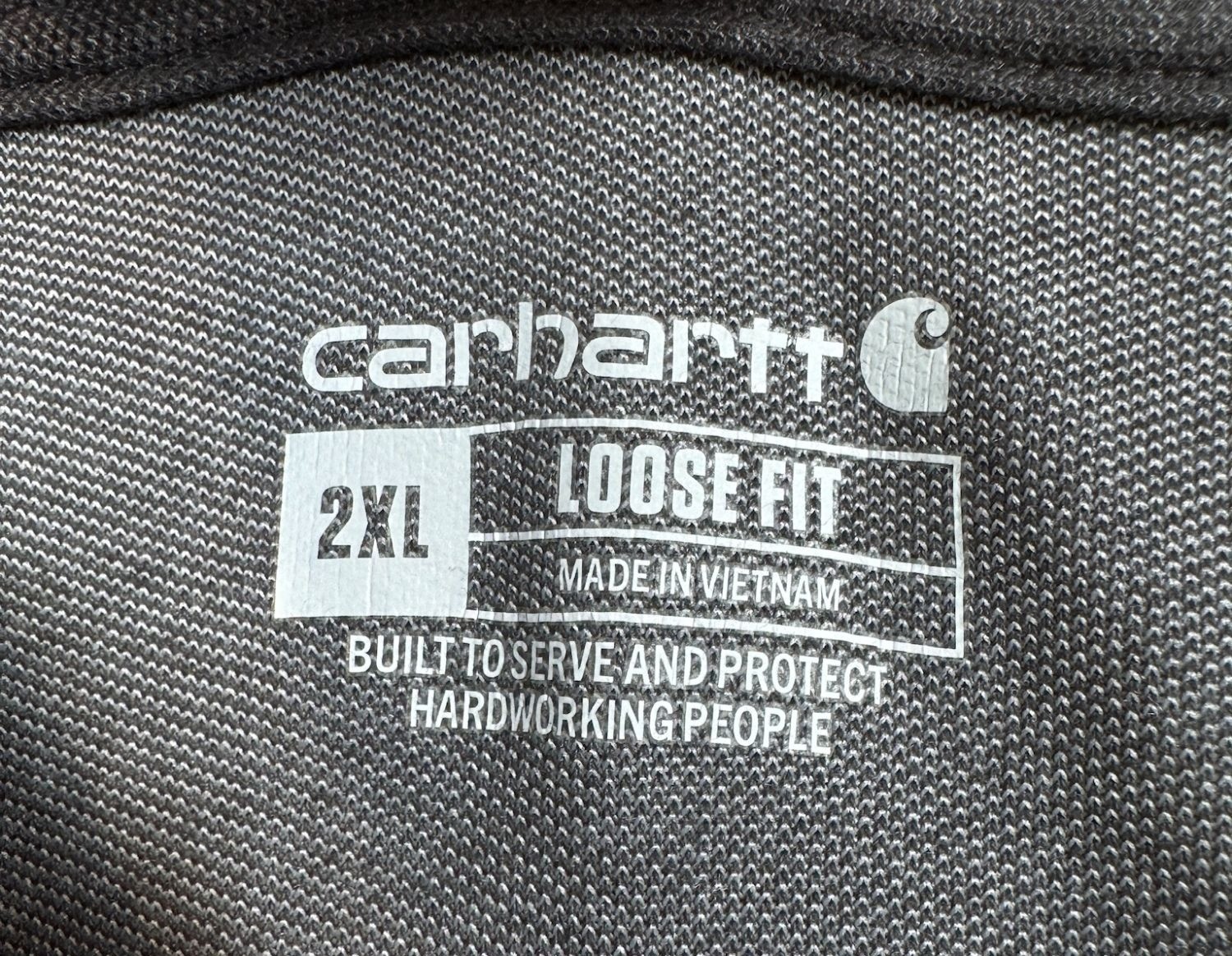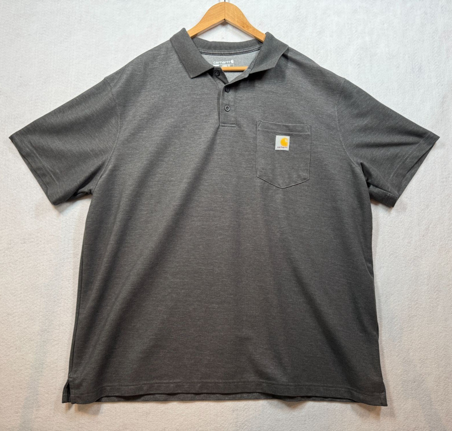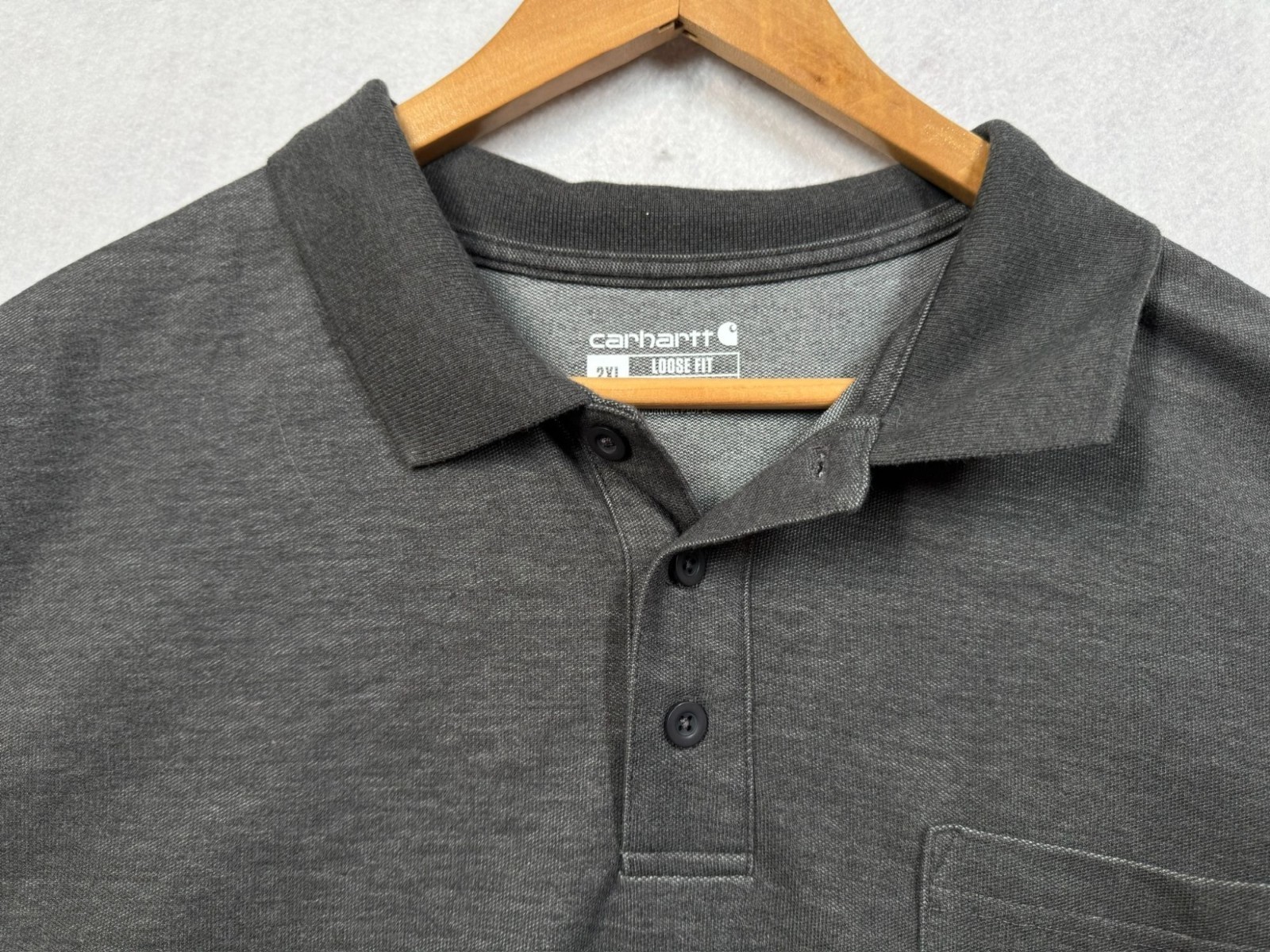 Carhartt Polo Shirt Loose Fit Short Sleeved Charcoal Gray Workwear Logo Mens 2XL