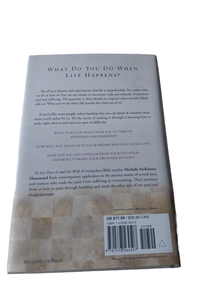 This hardcover book titled "Get Over It and On With It: How to Get Up When Life Knocks You Down" by Michelle McKinney Hammond is a valuable addition to your personal growth collection. It was published by Doubleday Religious Publishing Group, T.H.E. in 2002, has 240 pages, and weighs 13.3 oz. The book is written in English and has a height of 0.9in., width of 5.8in., and length of 8.5in.